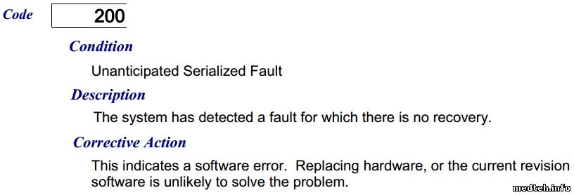 005 - Acoustic Power Monitor Fault 031 - Frame Composition timed out 200 - Unanticipated Serialized Fault 201 - The Front-End Controller has reported an error for which there is no recovery