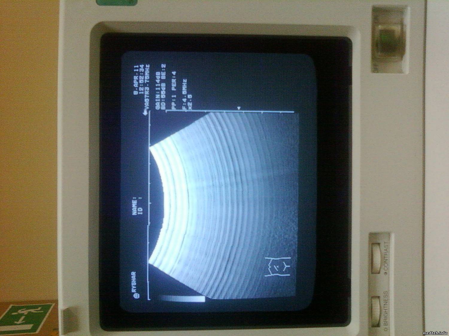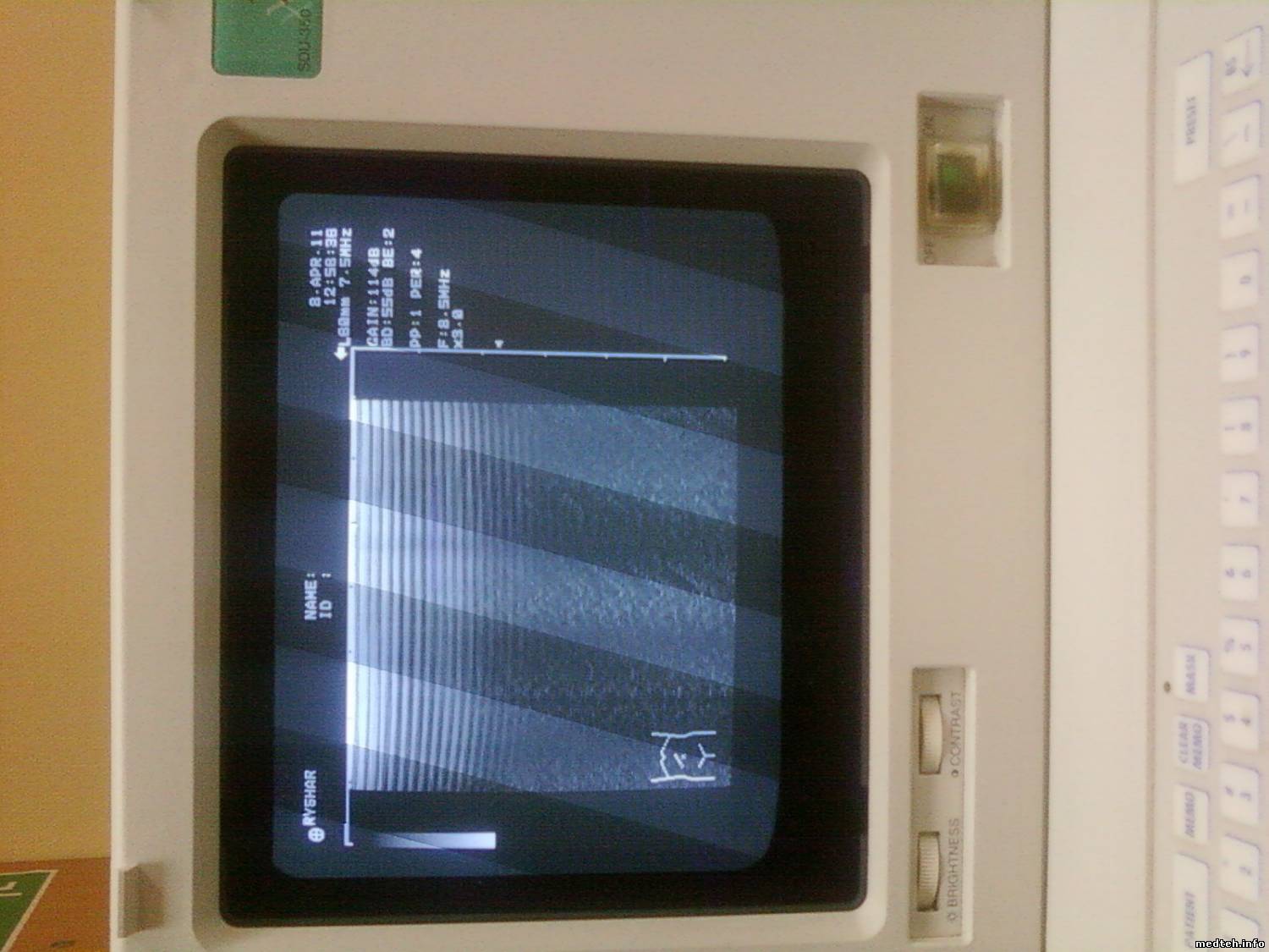 Доброго времени суток! Привезли УЗИ Shimadzu SDU-350XL. На экране на обеих датчиках в верхней части растра видны полосы. Что это может быть? По питанию никаких пульсаций нет ... И постоянно горит кнопка "RECORD".