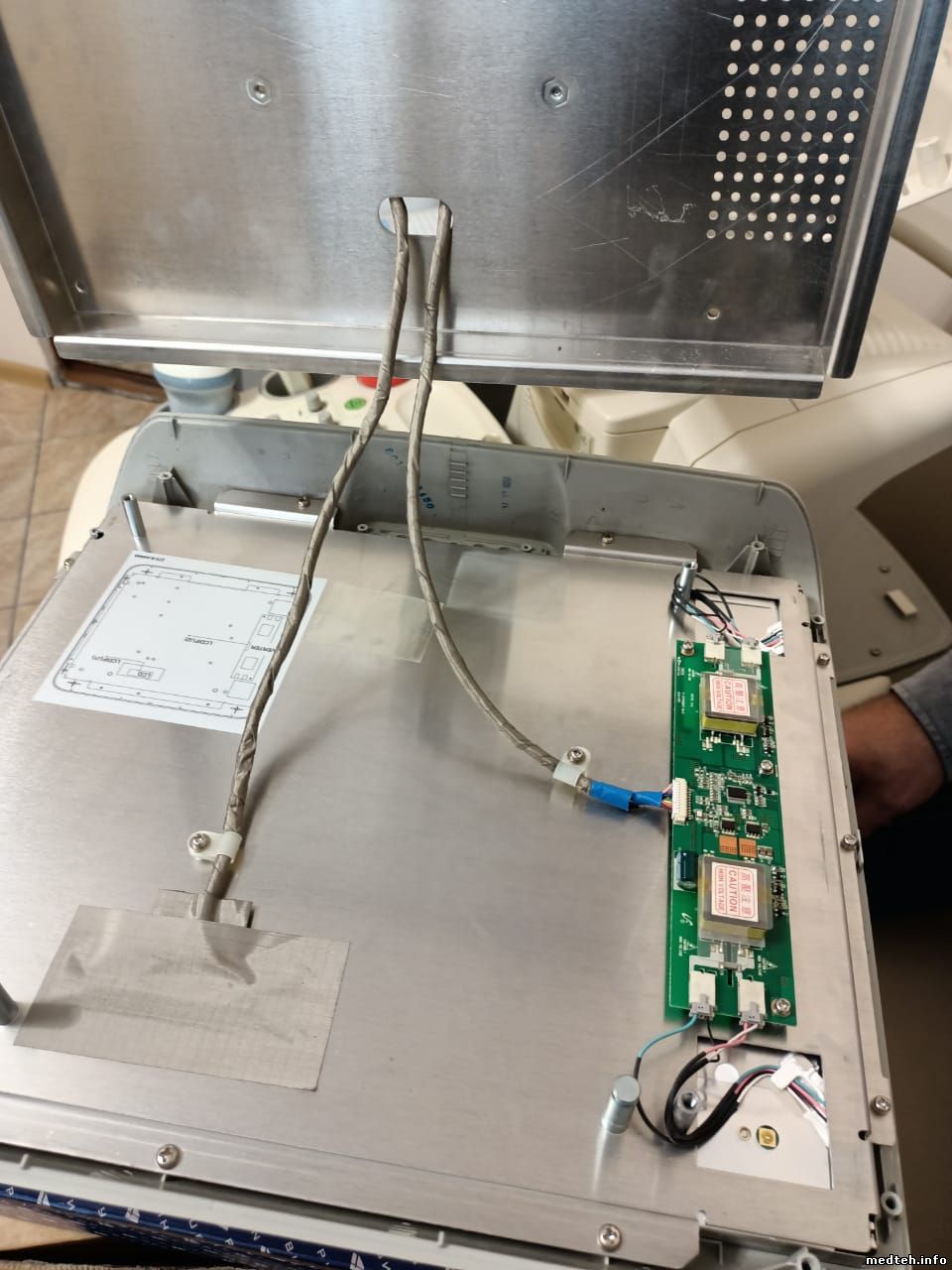 В этих аппаратах часто ломается кабель монитора VGA. Обычно прокидывают новый кабель снаружи. Однажды даже пришлось менять кабель питания на 220 В.