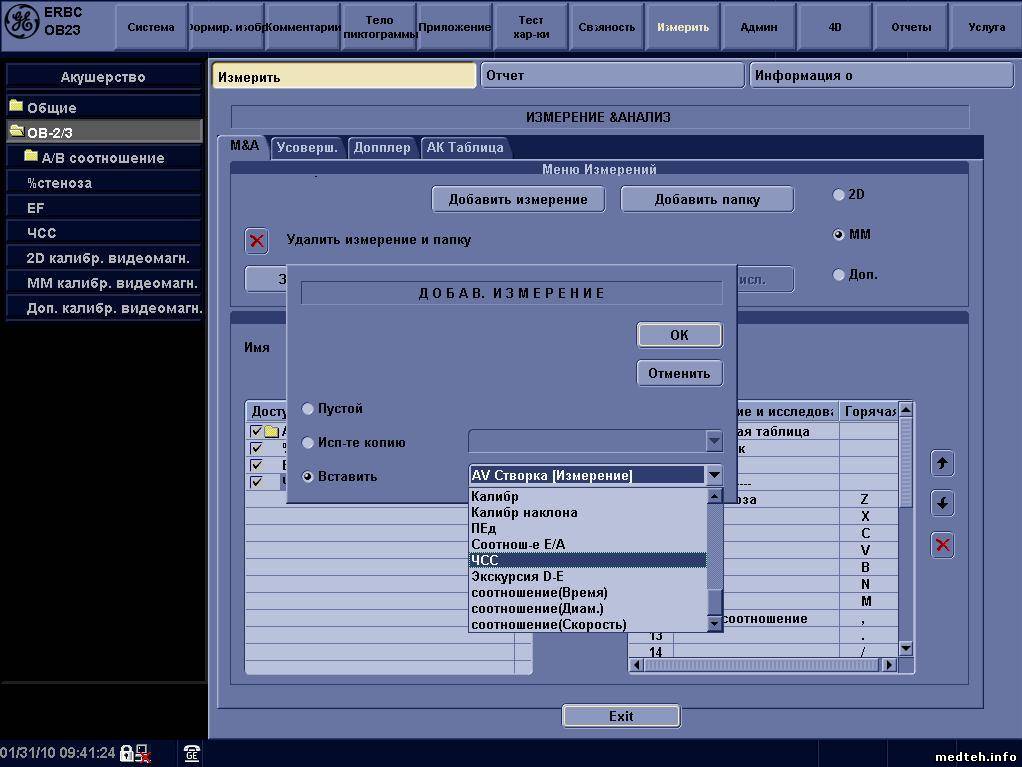 Итак, как набивать меню измерений мы разобрались. Теперь о том, откуда брать сами измерения. Есть волшебная кнопка "Добавить измерение". Она добавляет его в левую табличку. Оно, измерение, может быть написано с нуля, может быть копией готового или просто готовым измерением, которое уже есть в недрах аппарата. Соответственно, используются соотв. переключалки (см. картинку ниже). Итак, нажимаем "Добавить измерение", переключаемся в режим "Вставить" и из длиннейшего выпадающего списка выбираем что надо. Оно попадает в левую таблицу, а как перенести в правую мы уже проходили.