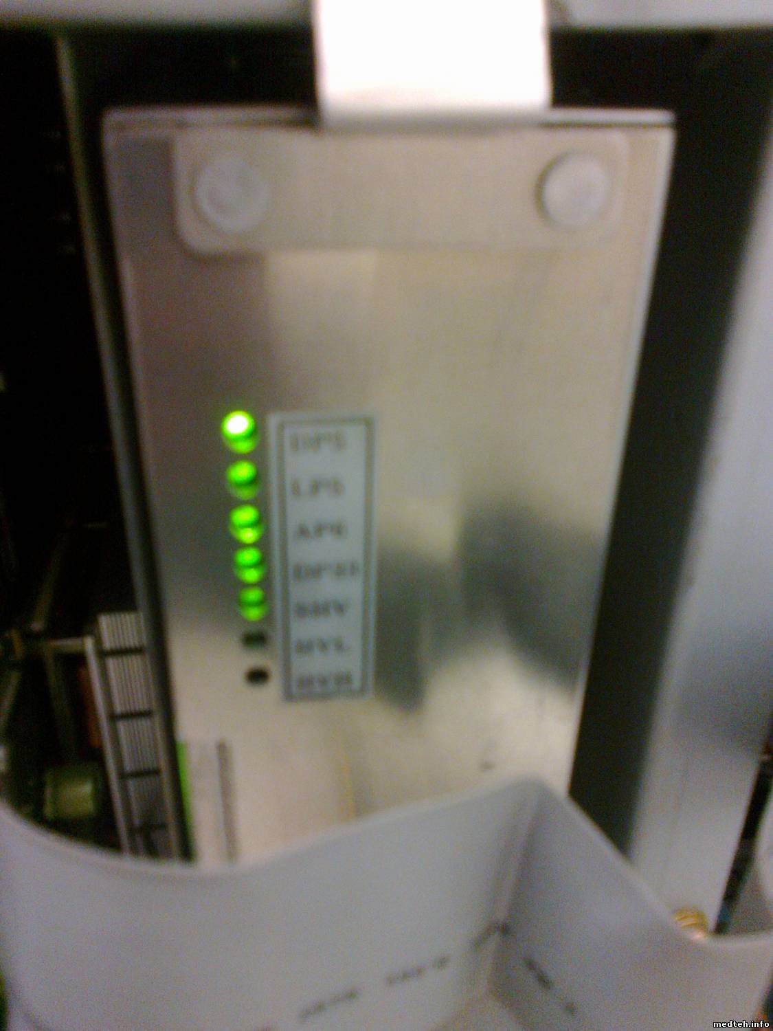 когда аппарат при нажатии не открывается, напряжение на блок питания APS поступает.И на нём горит 2-я лампочка-LED(см.фото1). Ещё: иногда аппарат включается, но притрагиваясь к датчику не показывает изображение органов(см фото 2).В это время (когда датчик не показывает) лампочки на блоке питания горели след.образом(смюфото 3)