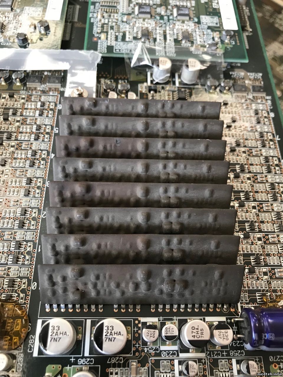 Всем привет! С альфой десятой проблема. На экране появился засвет. один черный столбец.. сначала подумали что кристалы датчики накрылись. проверили гамексовским силиконом оказалось, что проблема в самом аппарате. на всех датчиках тоже самое. разобрали прибор и нашли неисправные элементы, часть заменили, а с частью возникли проблемы. Фотки прикрепил.. подкажите кто-нибудь меняются эти элементы отдельно... или можно ли вообще их найти?