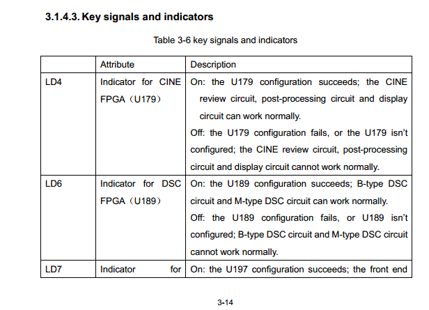"LD6 Indicator for DSC - FPGA(U189) On: the U189 configuration succeeds; B-type DSC circuit and M-type DSC circuit can work normally. Off: the U189 configuration fails, or U189 isn’t configured; B-type DSC circuit and M-type DSC circuit cannot work normally."