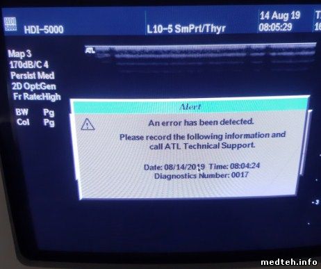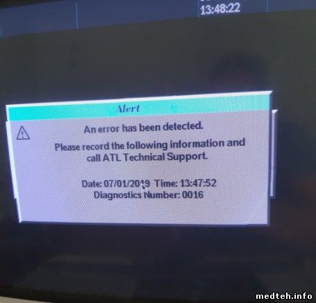 УЗИ HDI 5000 СТ от Philips выдаёт ошибку "0016".
