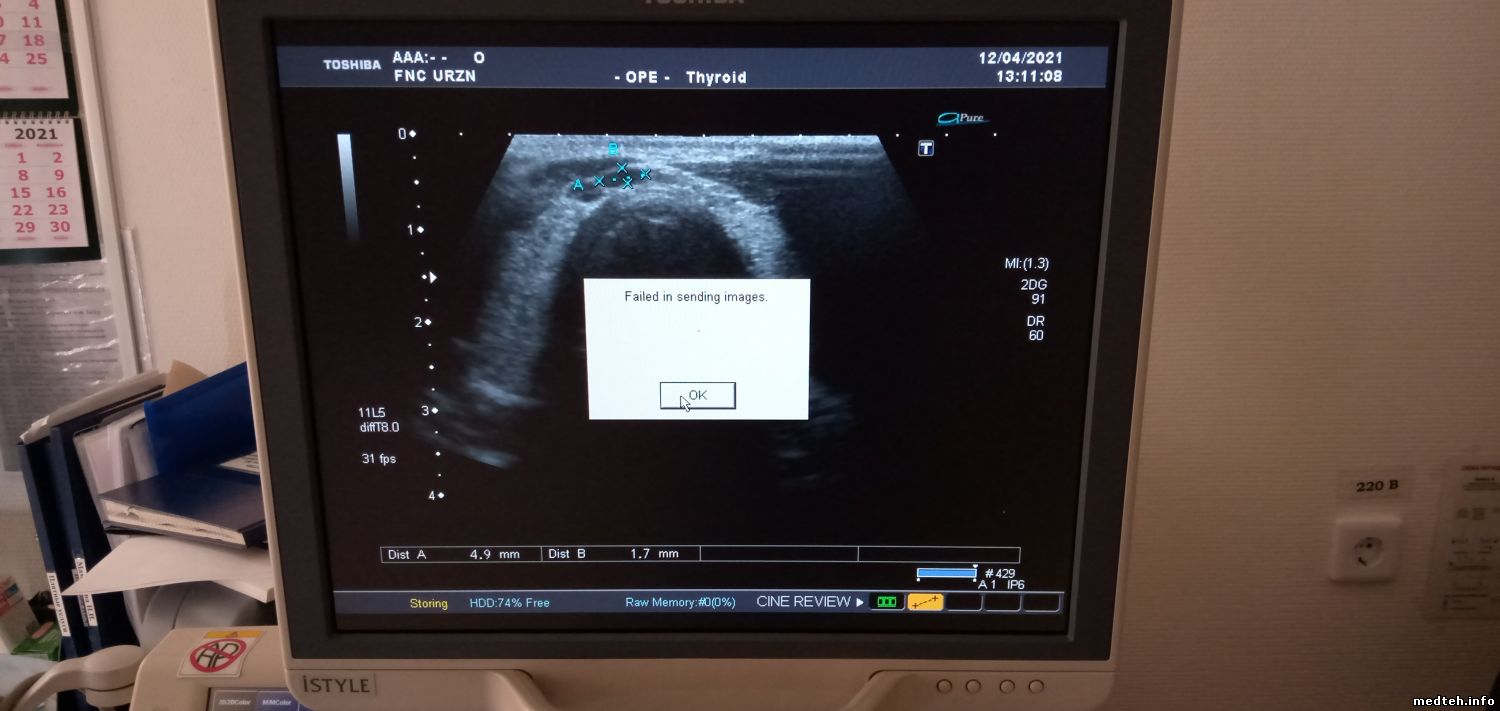 Базу пациентов постоянно чистим, занято не более 60 %. КЭШи Win и DICOM 0 %. Ошибка раньше возникала раз в месяц, сейчас несколько раз в неделю. Лечится только перезагрузкой, так, как дальше аппарат не работает.
