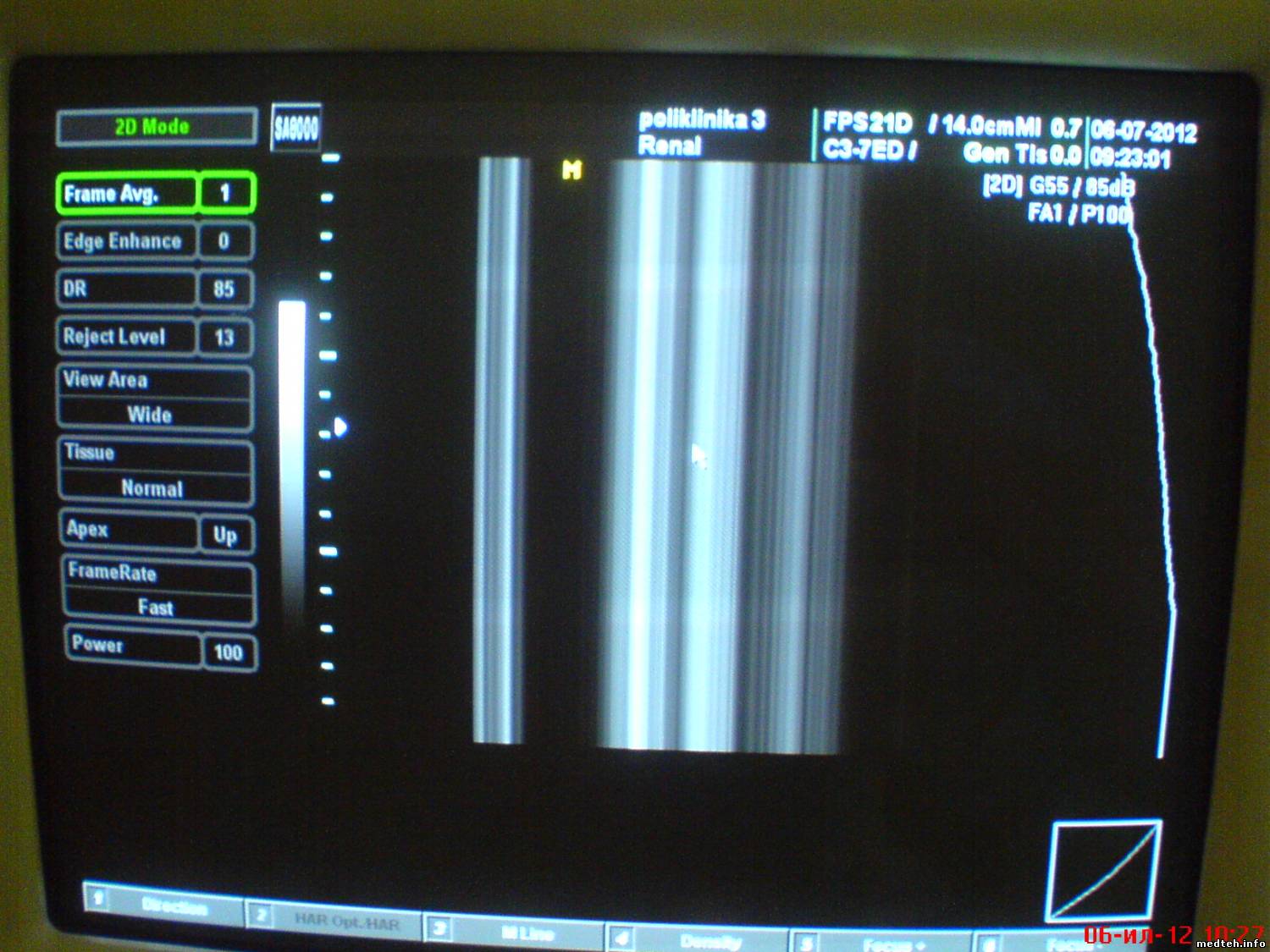 Так кто же подскажет коды ошибок? Да, еще один момент пропадает ультразвуковое изображение или появляются полосы (см. фото), после чего аппарат виснет и выдает системные ошибки.