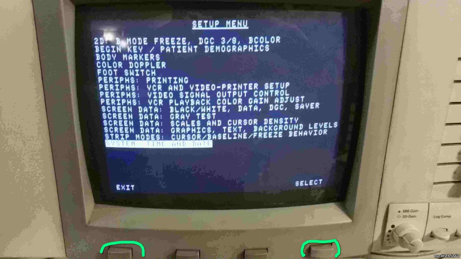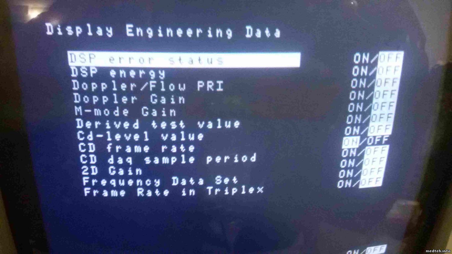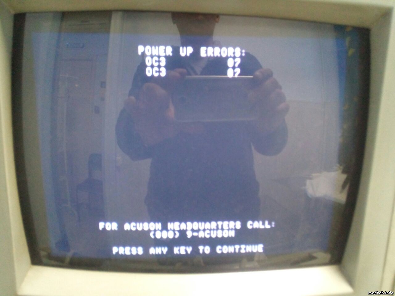 Есть данный аппарат (очень древний конечно), при загрузке выдает ошибку "power oc3 error 07, press any key", при нажатии любой клавиши загружается, рабочее окно белого фона (вместо черного), изображения с датчиков нет. В настройки войти можно а изменить ничего нельзя (функциональные клавиши под монитором не работают).