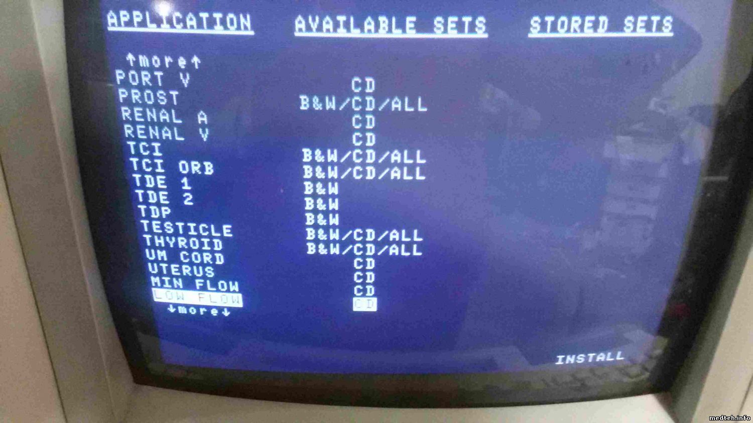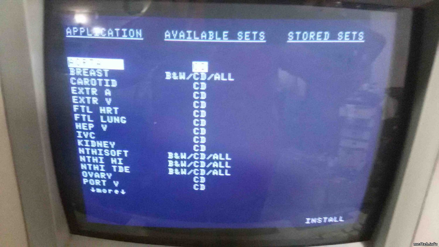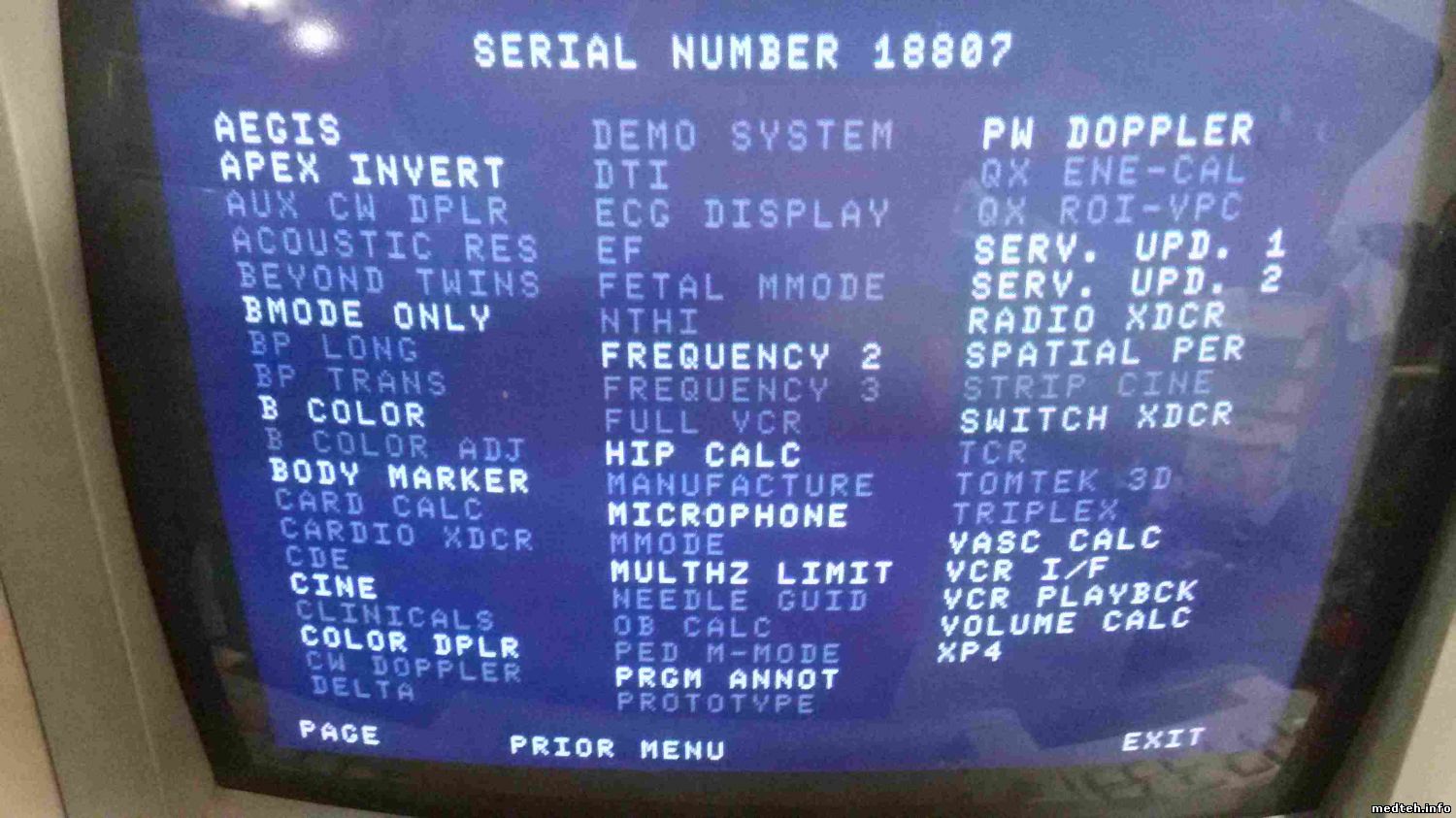 Доброго времени суток! Коды ввел. Ошибка "ILLEGAL CONFIGURATION INVALID ENCRYPTION FOR MAIN (FOR XDCR)" исчезла. Экран от иероглифов очистил в меню initialing batary ram. Установил дату и время. Аппарат загружается, рабочее окно появляется, узи датчик работает.
