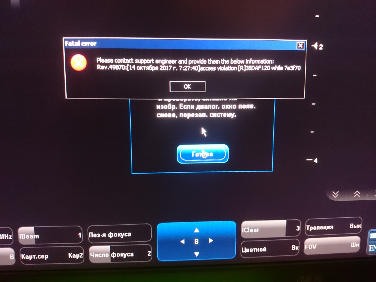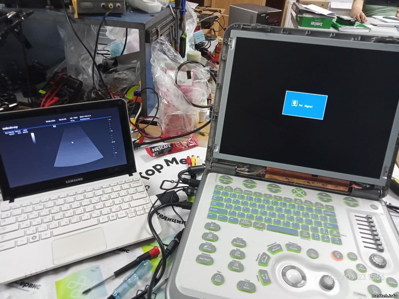 На УЗИ полетел жёсткий диск, много битых секторов. Винду, вроде бы, удалось восстановить, но вот дальше при загрузке ПО происходит сбой. Аппарат, либо уходит на перезагрузку, либо выключается.