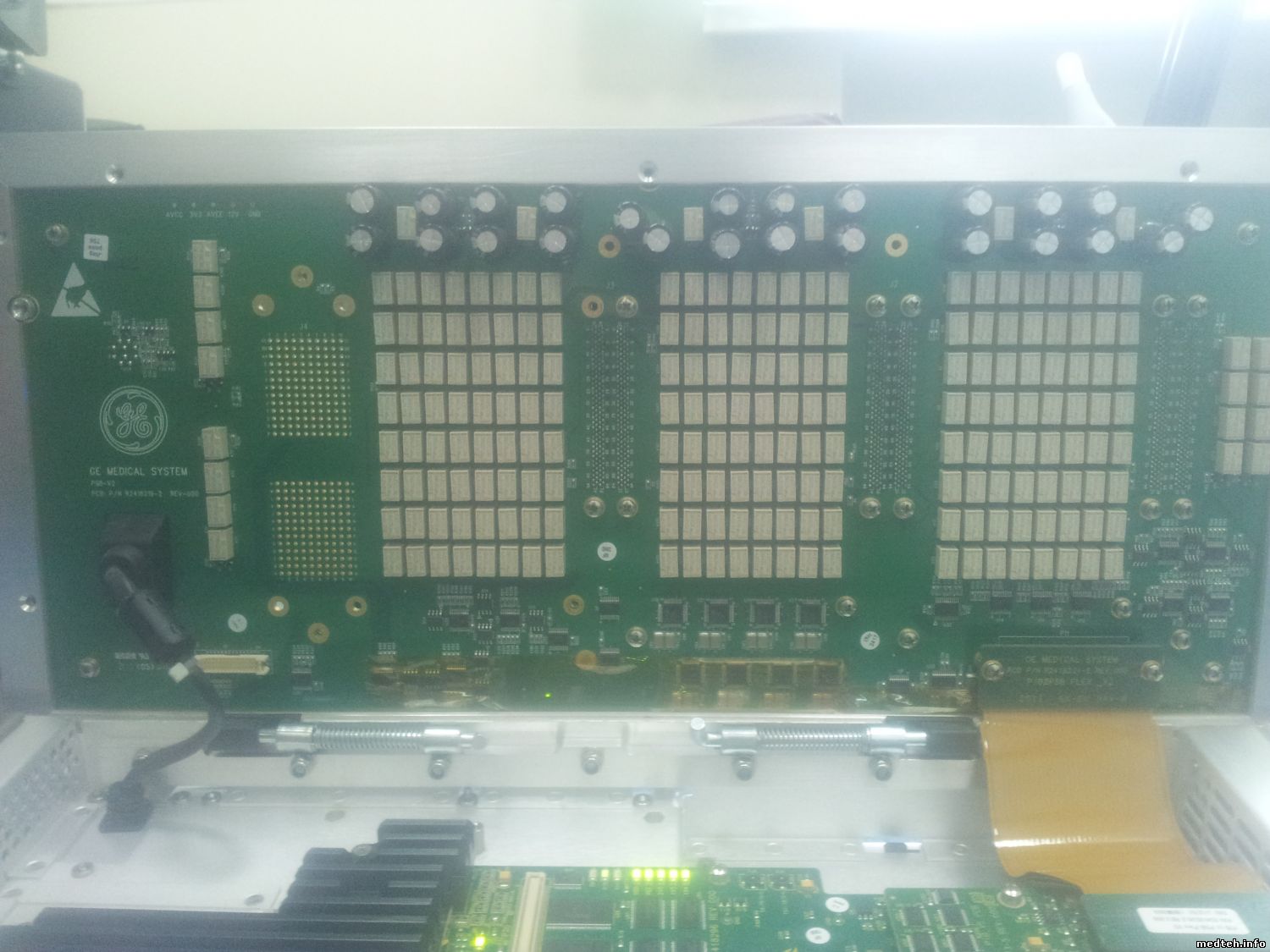 В общем попал на ремонт аппарат УЗИ Vivid S5 история с ним такая: в центральном порту стоял по-моему линейный датчик, при очередном запуске аппарата и работе с ним, врач обнаружила что не показывает движение сосудов, при доплеровском измерении.