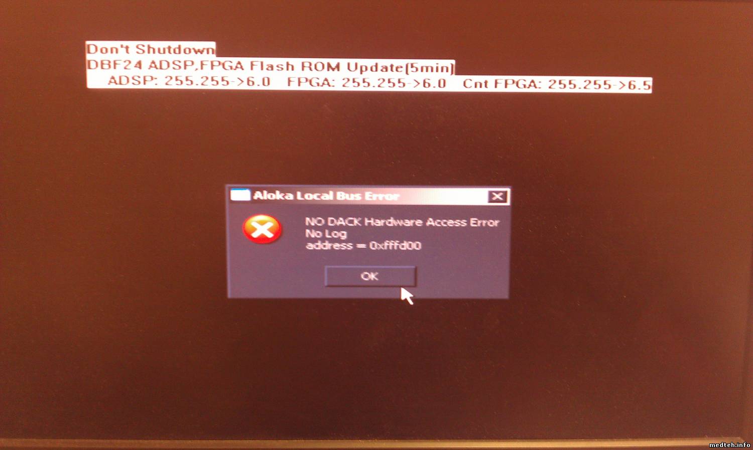 далее следует череда похожих сообщений о ошибках доступа к аппаратной части и далее аппарат не реагирует.