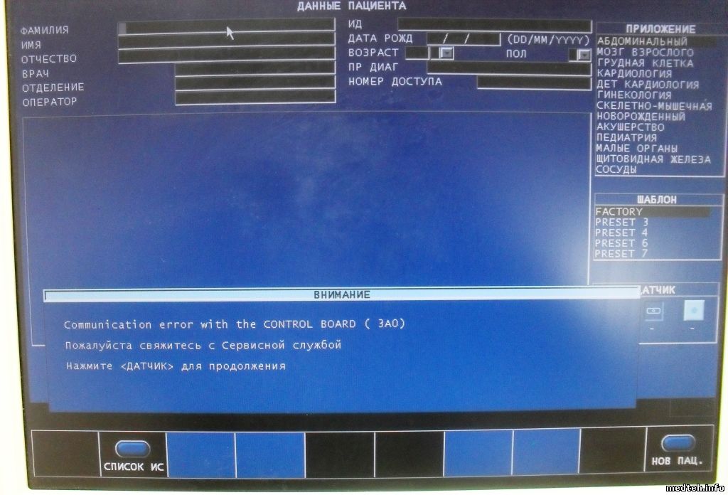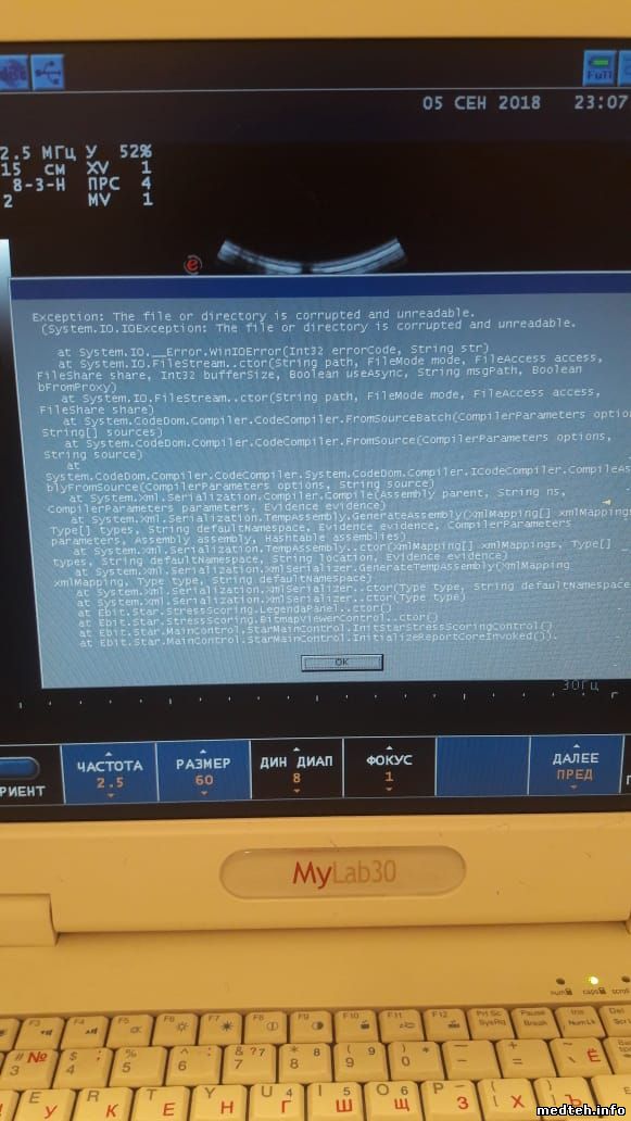 Принесли в ремонт УЗИ MyLab 30 с дефектами. После загрузки мигала на экране иконка клавиатуры и аппарат не выключался.