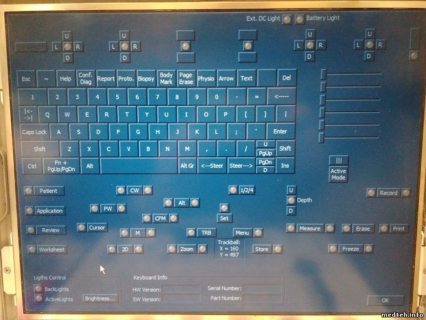 Не работают функциональные клавиши (фриз, выбор режимов и т.д), трекбол и компьютерная клава работают.