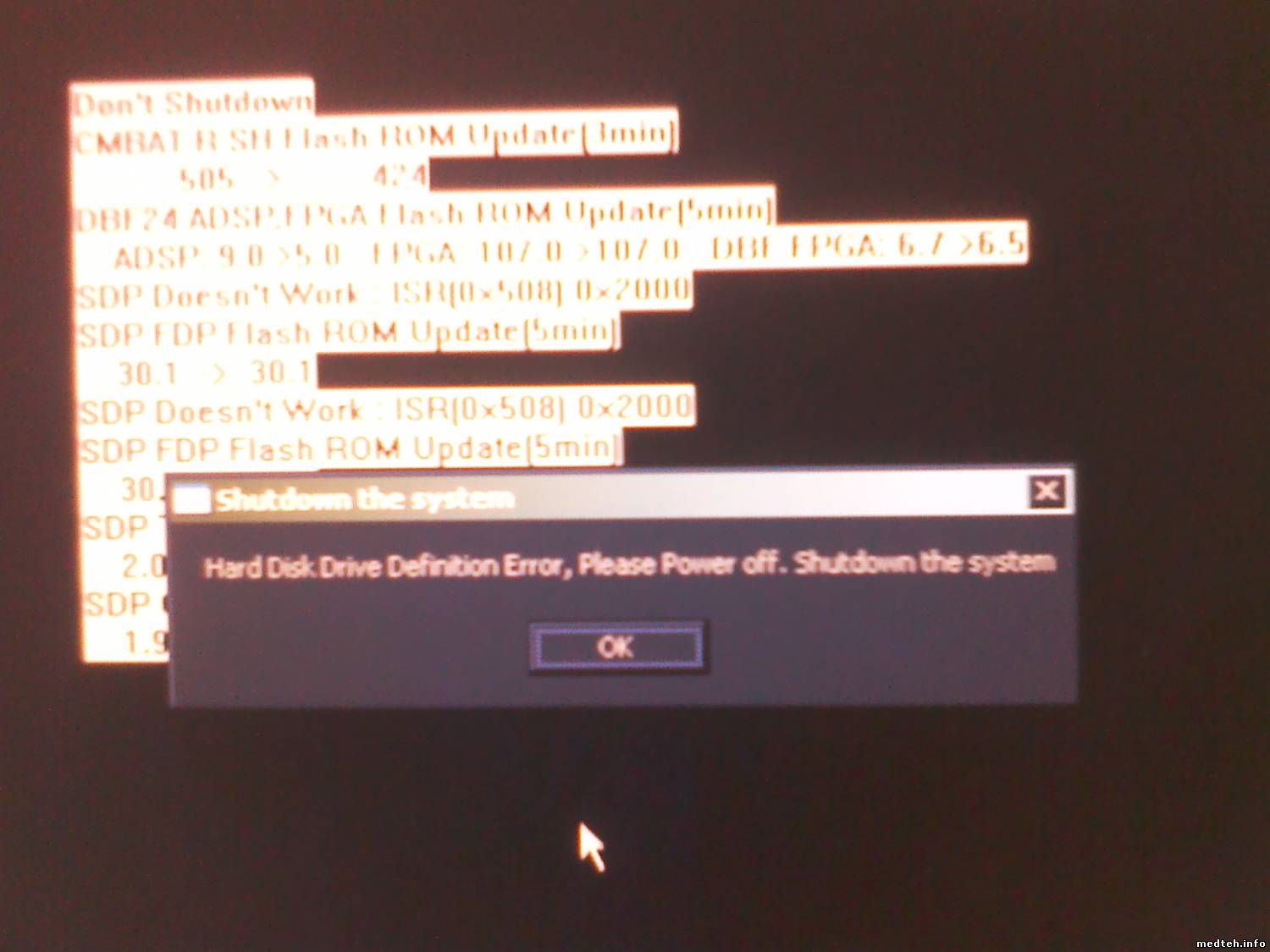 Добрый вечер. Я из калуги. У нас очередная проблема . сломался аппарат aloka3500 . не видит датчики и пишет что неисправен конектор. а перед этим слетела дата. батарейка в норме. ставил диск с новым образом.до конца не инсталируется. ошибки во вложении