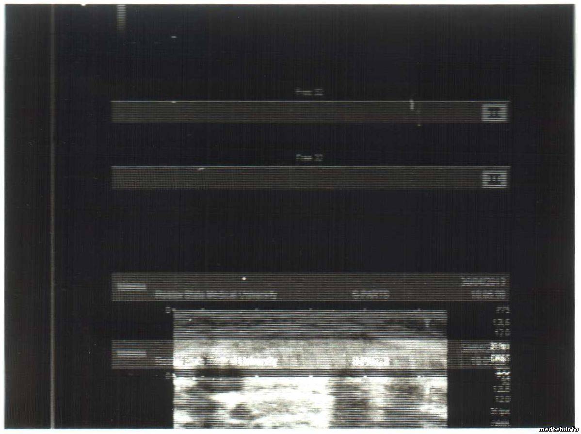 Здравствуйте, коллеги. Спасибо за помощь. И сам считаю, что лучше выложить фото того, что распечатывает принтер, что и делаю. Можно заметить, что принтер печатает верхнюю часть снимка в нижней части (2 раза), нижняя часть изображения УЗИ не распечатывается, хотя "меню с надписью" распечатывается. Распечатка нечеткая.