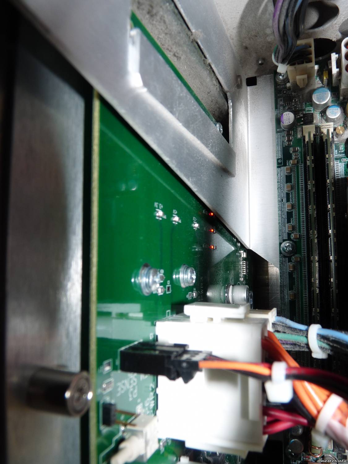 При первом вскрытии "фронт енд" пропылесосил, разъёмы проспиртовал. Все вентеляторы крутятся, не где красные LED не горят, винты работают! А картинки на обоих мониторах нет! подключался к S-video, тоже нет! Таблица напряжений у меня есть, по этому сразу и написал что 12в и 48в (получил 10в и 46в), не в рамках положеных -2+5%. Пытался на аналоговом блоке подстроечником подниять, не получается. Что просаживает не пойму, или БП 12в не держит (такой же как в ноутах и по размеру и повольтажу).