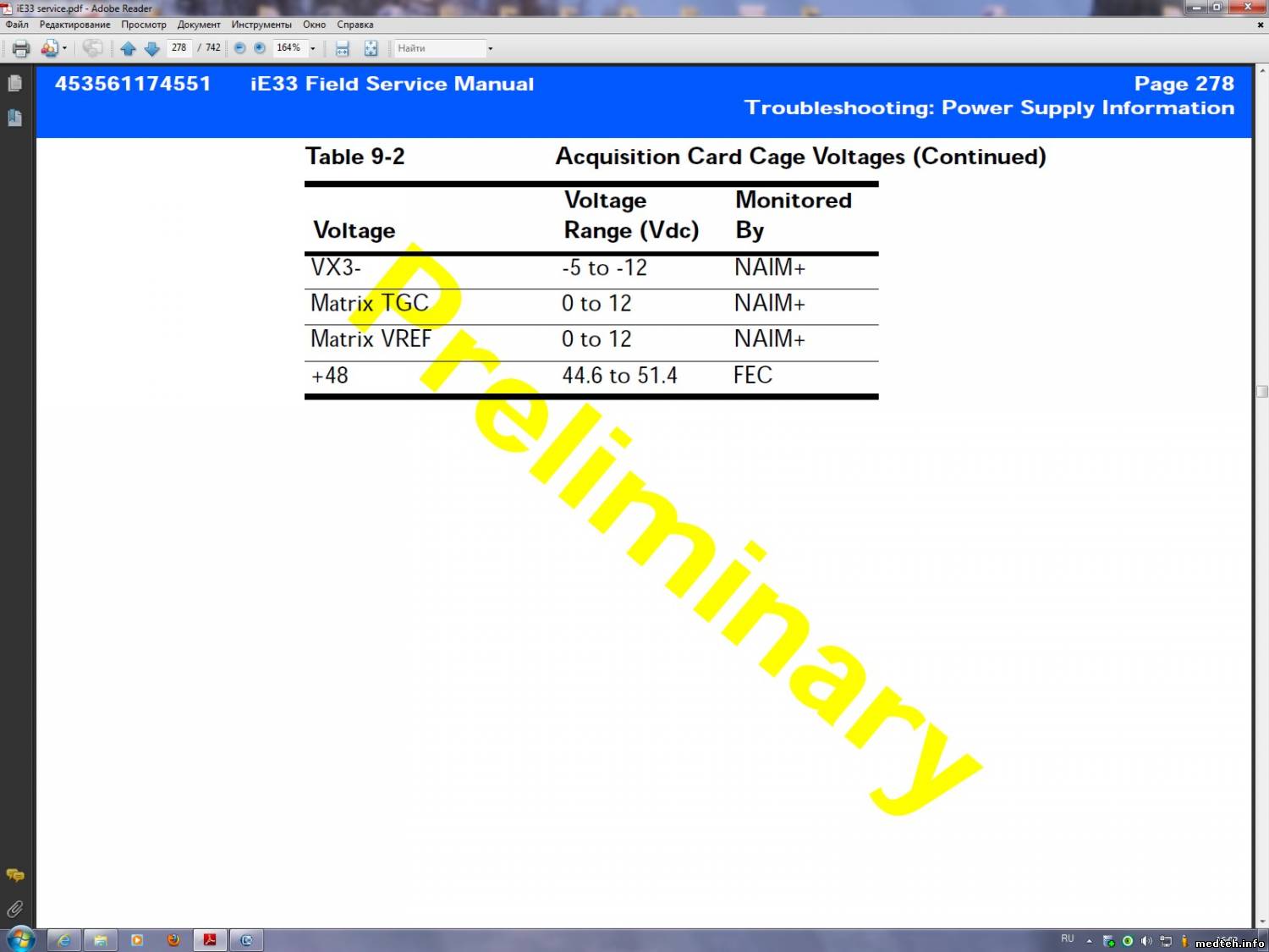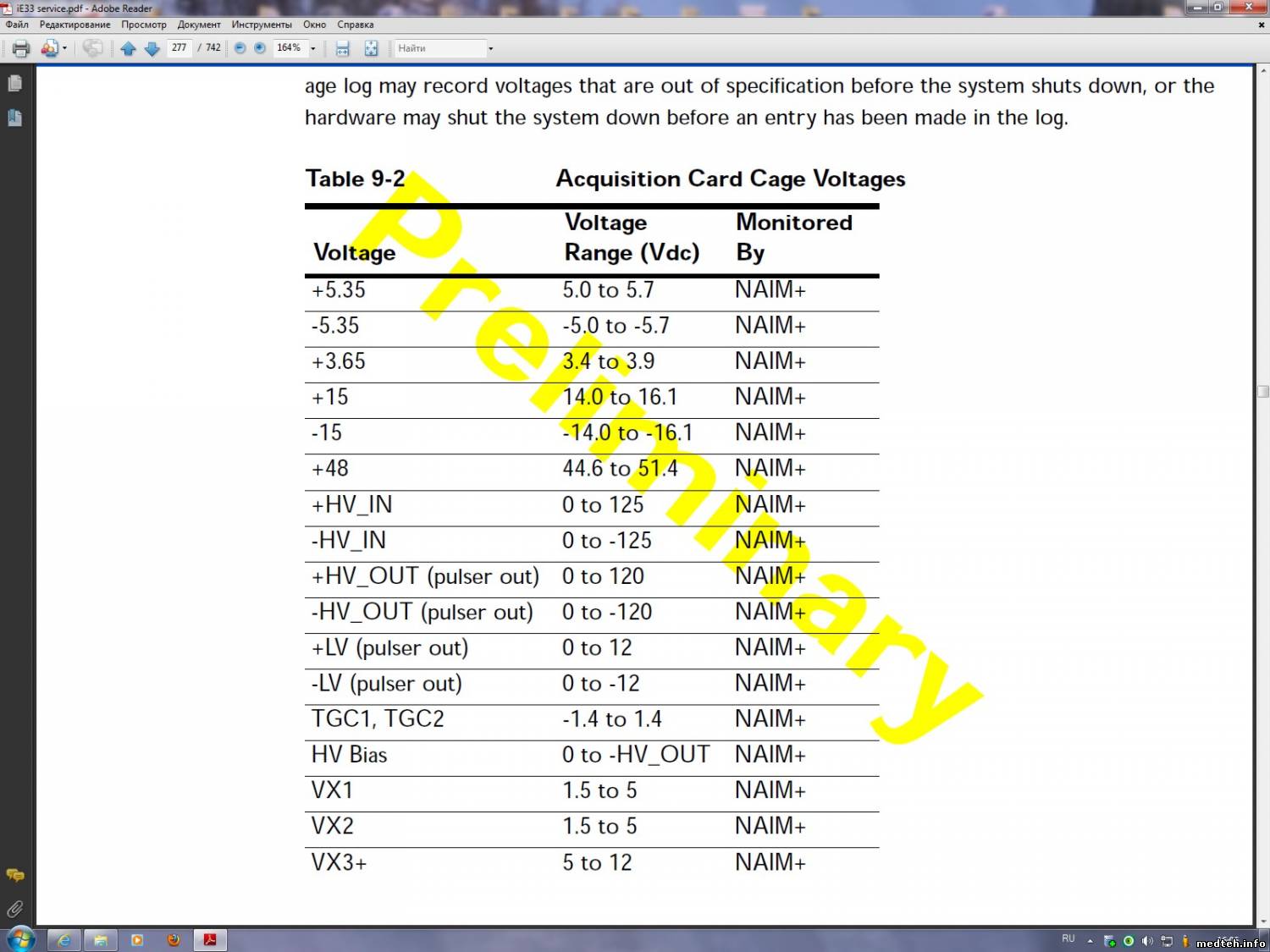 Аппарат 2008г. Работал нормально. Последнюю неделю (после выходных), включался со всеми "шумами" как положено, но на мониторе было сообщение "No video input" (раза с 3-5 работал). Через 4 дня вобще "шумит" но "тачскрин" "тёмный" а на дисплее "No video input"? На БП горят "нужные" светодиоды (3шт), т.е. напряжения 3.65, 5.35, -5.35, 15, -15, 48, 12В в норме!?! При замере (цешкой) 3.68, 5.36, -5.32, 15, - 15, 46, 10В? Раз аппарат работает, какой прогой можно подключится (и в какой разъём) для диагностики???