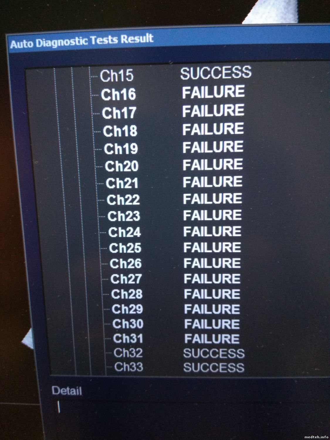 совершенно верно у картинки явно канальный характер причем у меня впечатление, что вылетел один элемент, а не два и не три, как можно подумать :) основание так думать - равные промежутки между артефактами по характеру конусов я почему-то подумал на ключи bias voltage. за истину в последней инстанции не принимайте, могу ошибаться в изгнании из ордена медтехников, а посему на лички и почты ответить не могу