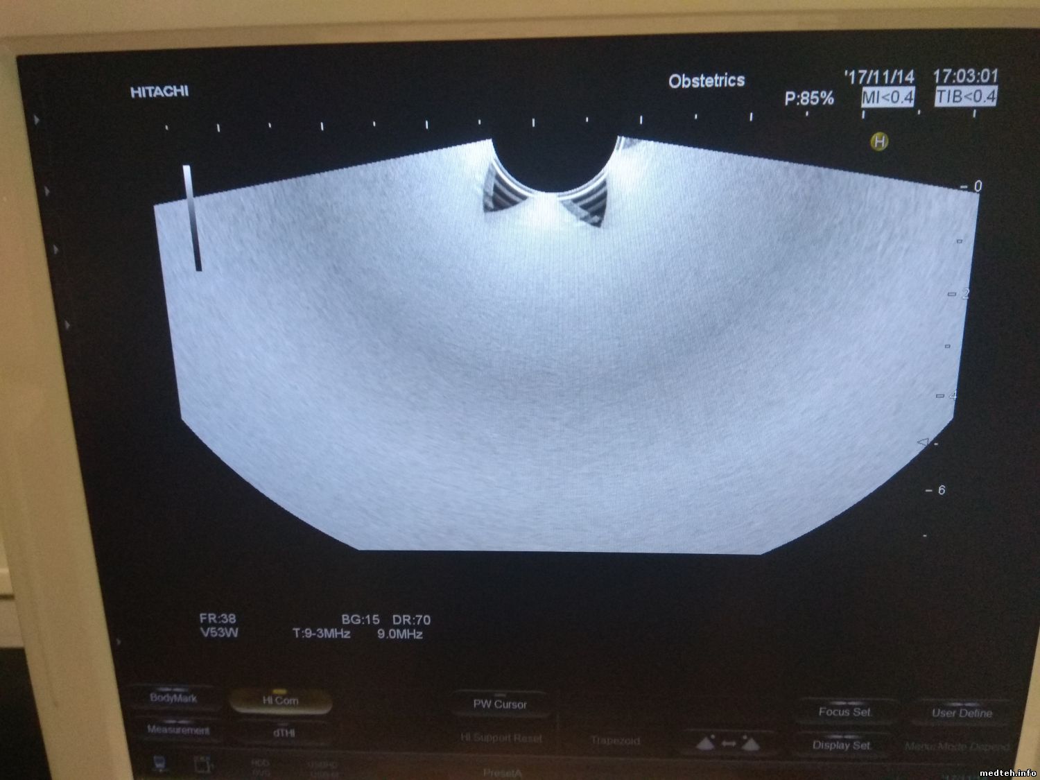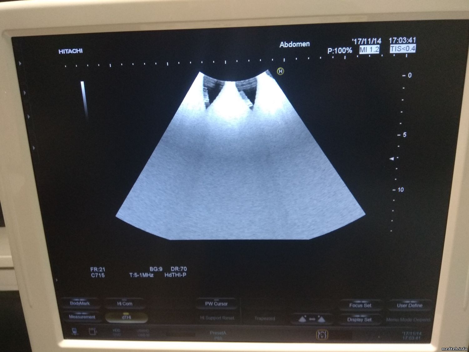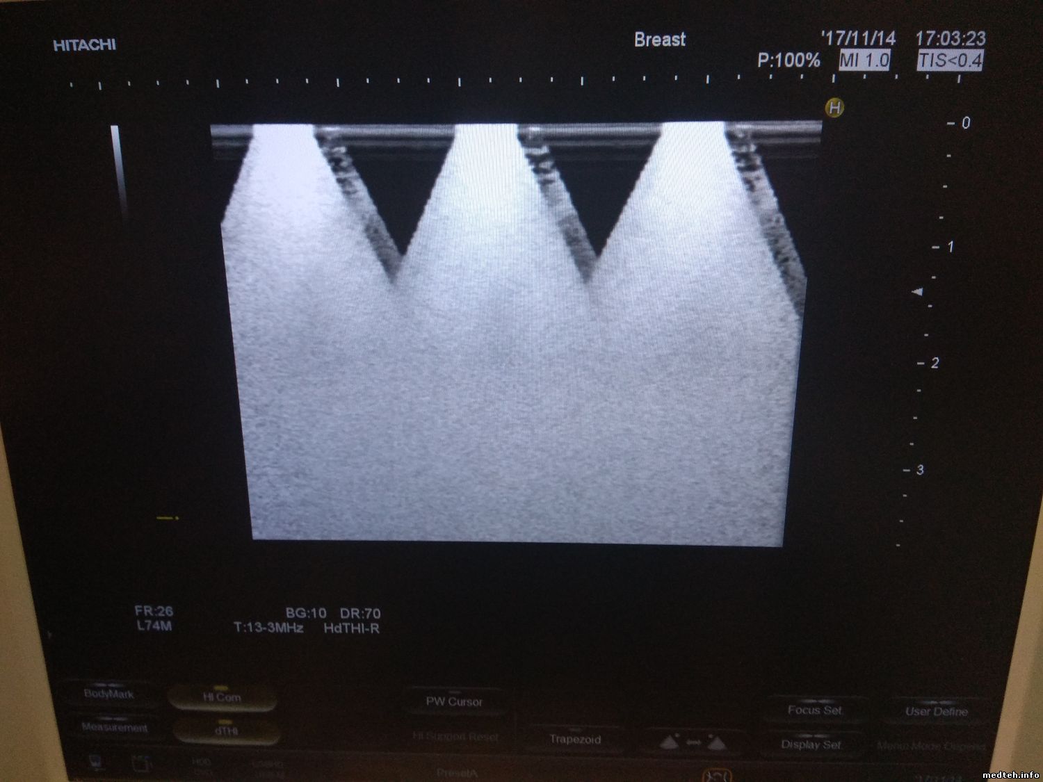 Добрый день! Случилась такая беда с УЗИ Hitachi Avius Hi Vision, изображение с датчиков как будто троится (смотрите фото). Компьютерный блок работает нормально, чистил, платы УЗИ с виду целые, сгоревших элементов не видно. Датчики включал поодиночке, и вместе, в разные входы, картина все та же. На фото изображения с трех разных датчиков.