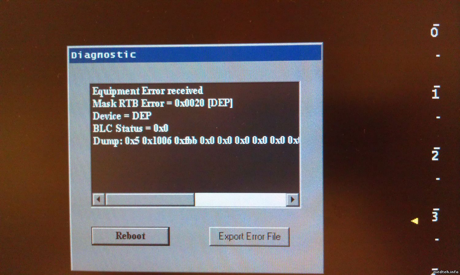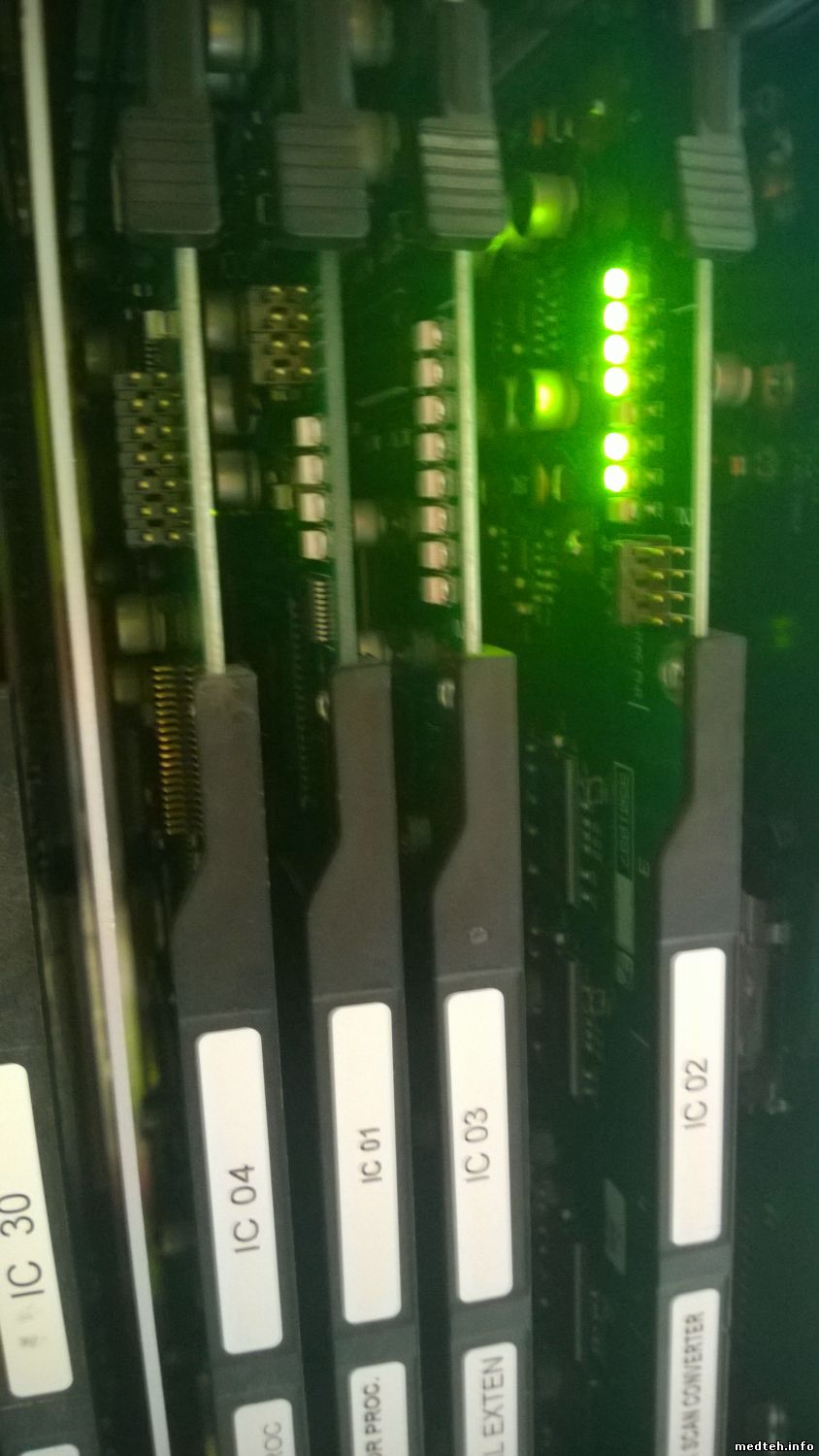 Изначально аппарат выдавал ошибку (см. рисунок). После звонка представительству им посоветовали вытащить какую то плату и работать так - типа на глаз разницы в изображении видно не будет. Так они проработали 2 месяца. После чего пошли помехи/полосы на экране. Ошибок сейчас (без платы) аппарат не выдает.