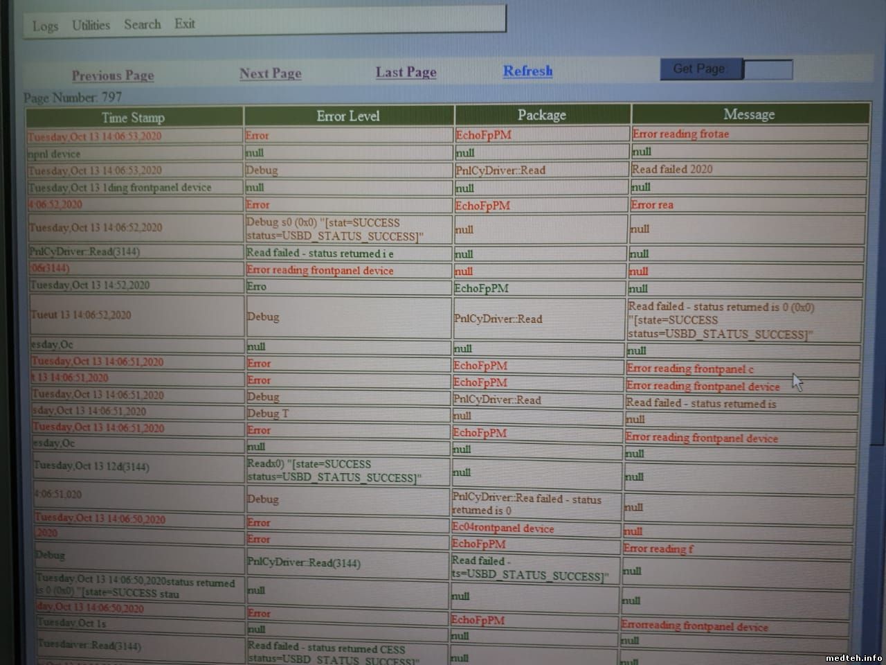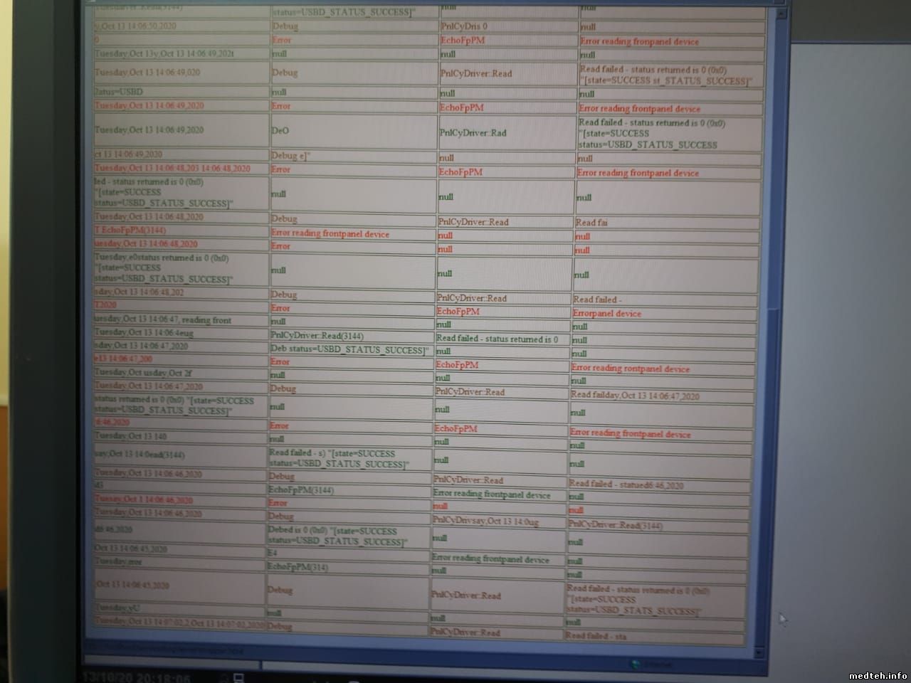 Коллеги всем добрый день, аппарат стал периодически зависать, не отвечать, стало отображаться окно перезагрузки, провели полное ТО с чисткой и заменой паст, диагностика через сервисное меню ничего не показала, сфоткали логи ошибок, подскажите кто сталкивался от куда начать, в чем может быть проблема? Вчера даже уже сенсор погас, после перезагрузки проблема уходит до следующего раза.