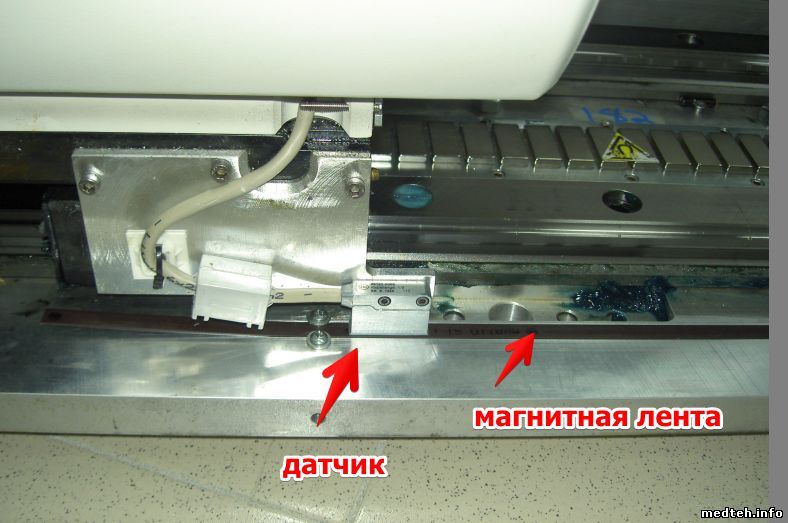 Ленту я заклеил, разровнял, правда, это слабо помогло, в месте разрыва она явно потеряла свои магнитные свойства. И тут случился косяк: видимо от манипуляций с лентой, слетела калибровка стола. Стол теперь в режиме standby, срабатывает safety relay. С сервисной панели стол управляется. Сам стол типа "постамент" на направляющих: