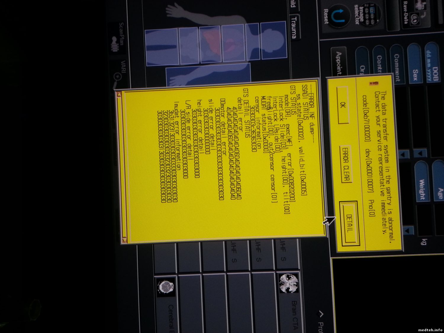 Это ошибка передачи данных внутри гентри с вращающейся части на стационарную. Начиная от битой оптики, разъемов, и заканчивая собсно платами SCST, SCRT и радиоканалом или оптикой по передаче (в зависимости от модификации аппарата)