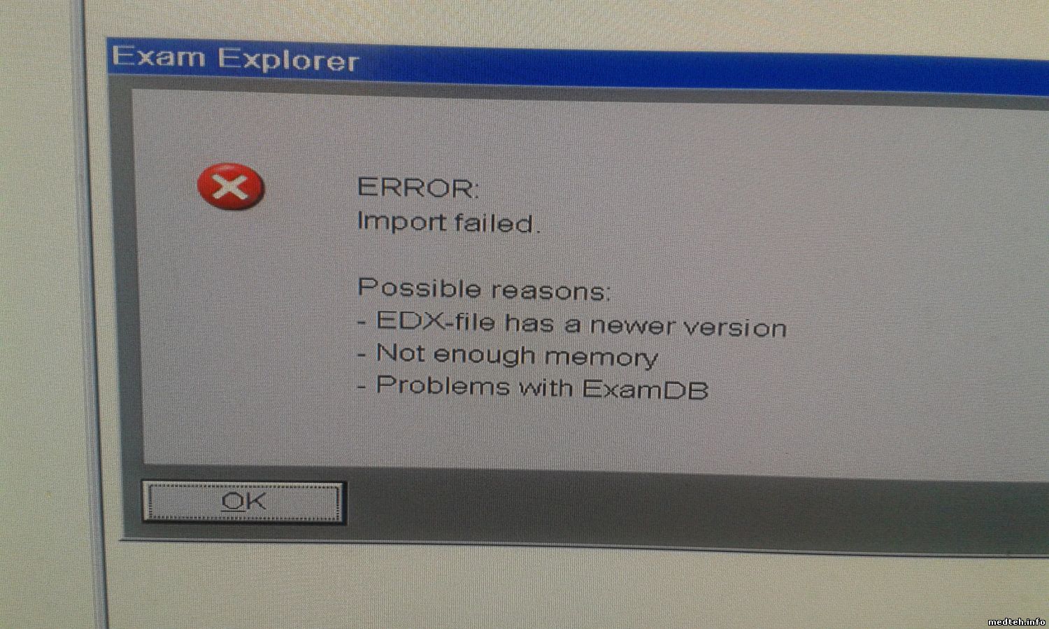 /ошибка дублируется 7 раз сразу, при нажатии на ОК и попытке изменить область исследования с головы на ноги опять серия ошибок ( уже 10-12 окошек)