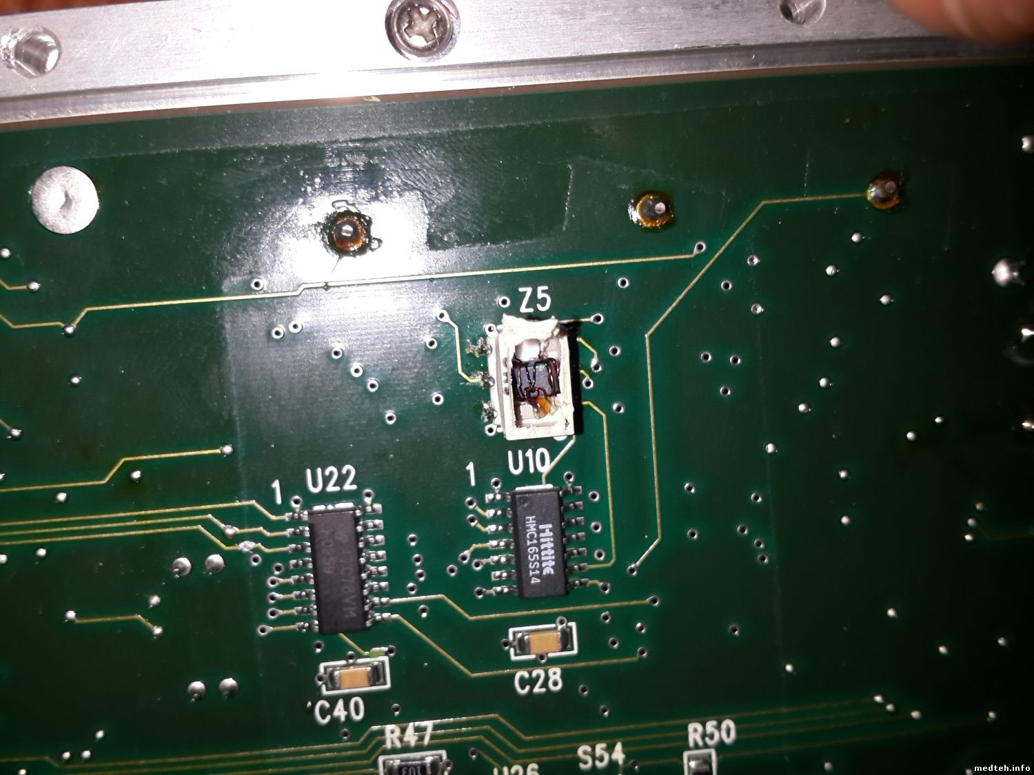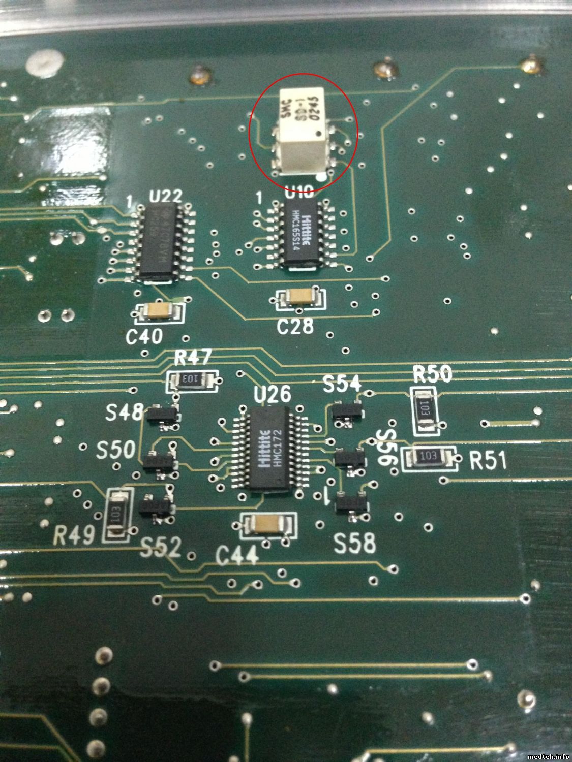 Здравствуйте, В системе был скачок по 5В. В одном из блоков питания сгорел предохранитель. Начала выскакивать ошибка RSB_ERR. Выяснили что RSB - это RF Switch Board. Достали эту плату, нашли одну вылетевшую микросхему HMC172QS24, заменили её. Вот грешим на еще на элементы что на фото (вздувшиеся). Помогите пожалуйста определить что за элементы. Спасибо.