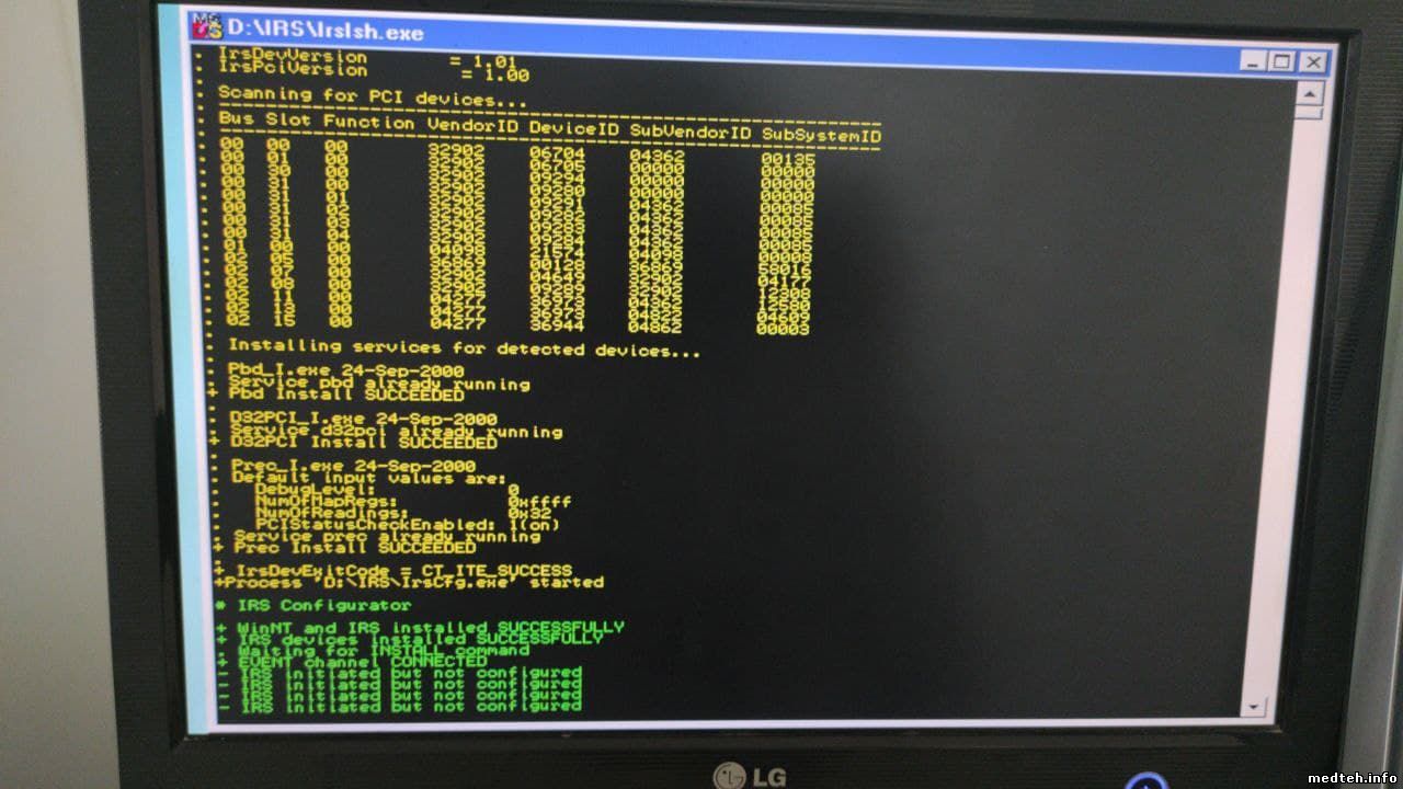 История такова: Имеются 2 вроде как одинаковых КТ (со слов владельца Spirit 6 или 16 - завтра уточню). В один непрекрасный день у Первого КТ перестал запускаться IRS. Заменили данный нерабочий IRS - на рабочий IRS со Второго КТ. Скопировали таблицы и всё заработало. Через год владелец решил запустить нерабочий IRS + оставшийся ICS со Второго КТ. IRS кстати заработал. Но у владельца КТ не получалось перенести таблицы. Какая там была ошибка - он уже не помнит. Решил владелец переустановить систему на IRS. Переустановил с диска, которые он получил вместе с этими КТ- но это не помогло. Затем эти ПК привезли ко мне: IRS (Primergy C150 PS150) + ICS (Celsius R610 PS150-D1357). Я повторно переустановил софт с диска Somatom Som5 IRS-2 VA47A. После установки, появилось окно ожидания команды с ICS. При запуске батника для переноса таблиц или же irswatch.bat - IRS сообщает ошибку "illegal command". Лог установки на IRS я просмотрел - ошибки нет в конце. ПК пингуются между собой. Оба ПК в рабочем и нормальном состоянии. Также переустановил систему на ICS с диска Somatom Som5 ICS-IES VA47C (Бекап имеется). Но и это не помогло. Есть мысль, что ошибка "Illegal command" связана с тем, что версия IRS несовместима с ICS, так как эти 2 КТ были куплены в Европе уже пользованными. Соответственно, могли напутать там с дисками. Да и комплект дисков один только, хотя должно было быть вроде два.
