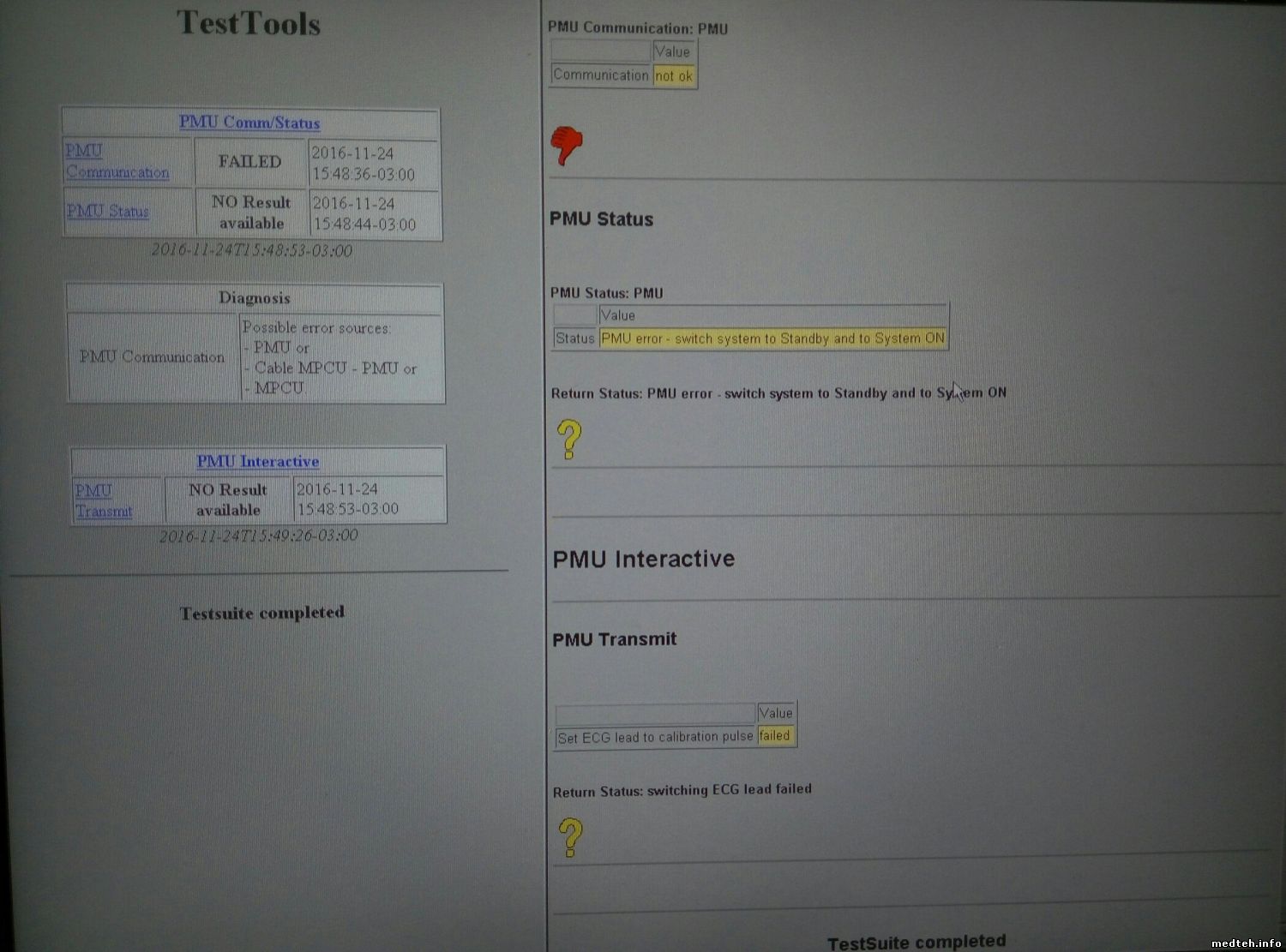 в MPCU ничего нет,это типа промежуточный комп,смотрите оптоволокно, или в моей ситуации был неисправен сам PMU, так как конструктивно это закрытая коробка и внутри стоит свой блок питания с преобразователем то все это шибко греется , в некоторых местах даже видно потрескавшуюся плату от перегрева ... еще есть разъем на столе (если вариант съемный) там вообще контакты почти зеленые...PMU converter , там вообще смотреть нечего, преобразование сигнала и отправка в оптику ...