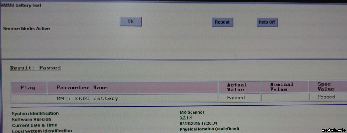Просто пока не проведен тест новых батарей, хост считывает старое значение из MEU. Причем заметь: батареи меняются за два захода (банк1 и банк2) и для каждого делается тест. Филипс считает, что оставлять магнит совсем без батарей (даже полудохлых) нельзя (даже на время замены оных) - в случае форсмажора квенч-кнопки работать не будут. Безопасность превыше всего!!!