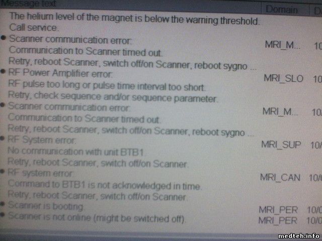 Аппарат при загрузке проверяет градиенты и РЧ тракт. Есть ошибка по рч импульсу. Проверьте в тест tools цепь трансмиттер-ресивер (судя по фоткам доступ к сервису есть) и конфигурацию аппарата.