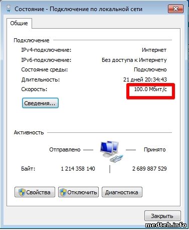 на свиче обычно светодиоды индикаторные горят, зеленый - 100 мегабит, желтый - гигабит, или, если винда - смотреть свойства текущего подключения, как-то так..
