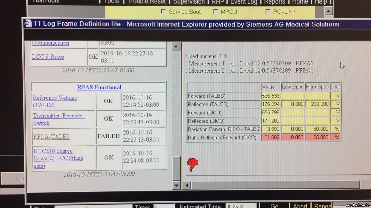 Нужно провести тесты BTB и Body coil !!! для правильного теста нужны тестовые "затычки", обязательно открыть коробку с TAS и осмотреть контакты реле, ну и подробности в студию ! Еще , если Body coil с водяным охлаждением, проверить состояние водяного фильтра, а так же количество доливаемой воды и как часто ... (RFPA так не глючит, за соответствие сигналов отвечает TALES , а это уже дальше по схеме ...)