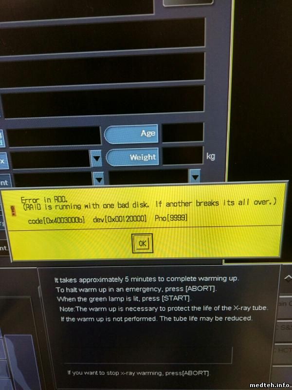 Вообще, раз уж ковыряетесь с рейдами, то имейте ввиду, что в случае Ваших неудачных действий он может "слететь" и все калибровки "канут в лету" как и RAW данные пациентов. ПРосто помните об этом, чтоб "не угробить" нужные даннные пациентов иль еще чего. На всякий случай скажу - где уже в темах писал, что даже калибровки по фантому можно из RDD считать в файл компа :-) В сервиснике есть инструкция на этот счет. У меня получалось эту манипуляцию проделать - там файл получается несколько сот метров. Обратно не восстанавливал - времени уж больно много потом уйдет на перекалибровку по фантомам :-) В Вашем случае имеет смысл сохранить попробовать, т.к. если это не оптика и не БП, то придется RAID форматировать... Кстати, один из признаков проблем с БП в корзине: после переформатирования RAID-а ПЕРВАЯ перезагрузка КТ происходит нормально, а после второй уже знакомые желтые сообщения появляются... И, также, замечено что ИНОГДА непонятные а-ля "смазанные кольцевые" артефакты на реконструкциях появляются а пауза при калибровке по фантомам между подачей высокого уж оооочень длительная становится...
