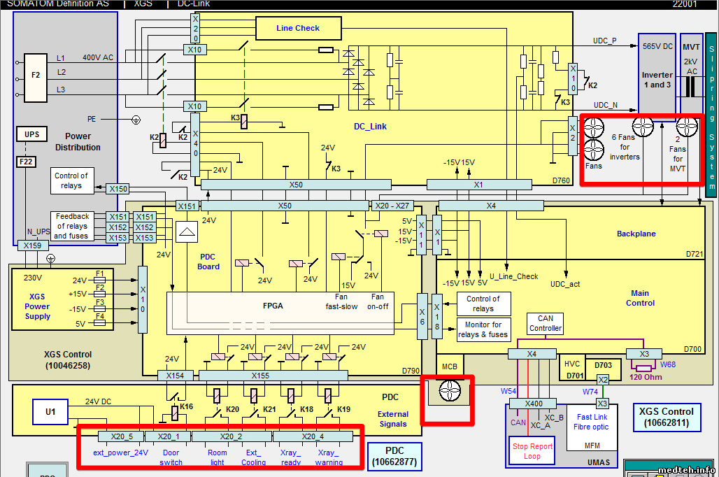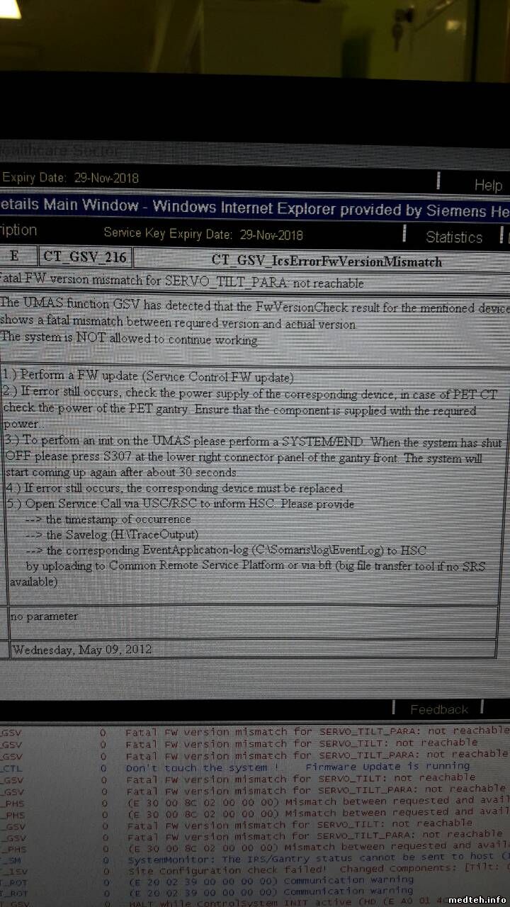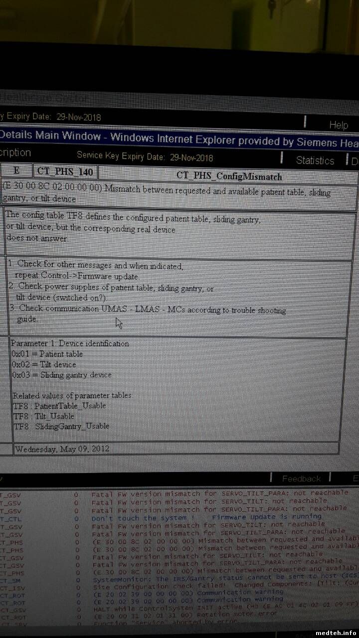 Запустили КТ. Был перебит кабель от контроллера вращения гентри до контроллера наклона гентри он идёт с умаса на контроллер вращения и транзитом от него на контроллер поворота. выявил дефект:поменял местами кан шину с контроллера вращения гентри на контроллер наклона гентри. перестал видеться контроллер вращения до этого не виделся контроллер наклона гентри. Единственная проблема осталась не с первого раза запускается если отключать упс со светофора. Если светофор не отключать и не обесточивать упс а просто делать шут даун то всё нормально. Пока решил сказать персоналу КТ чтоб не пользовались светофором а просто выключали шут дауном.