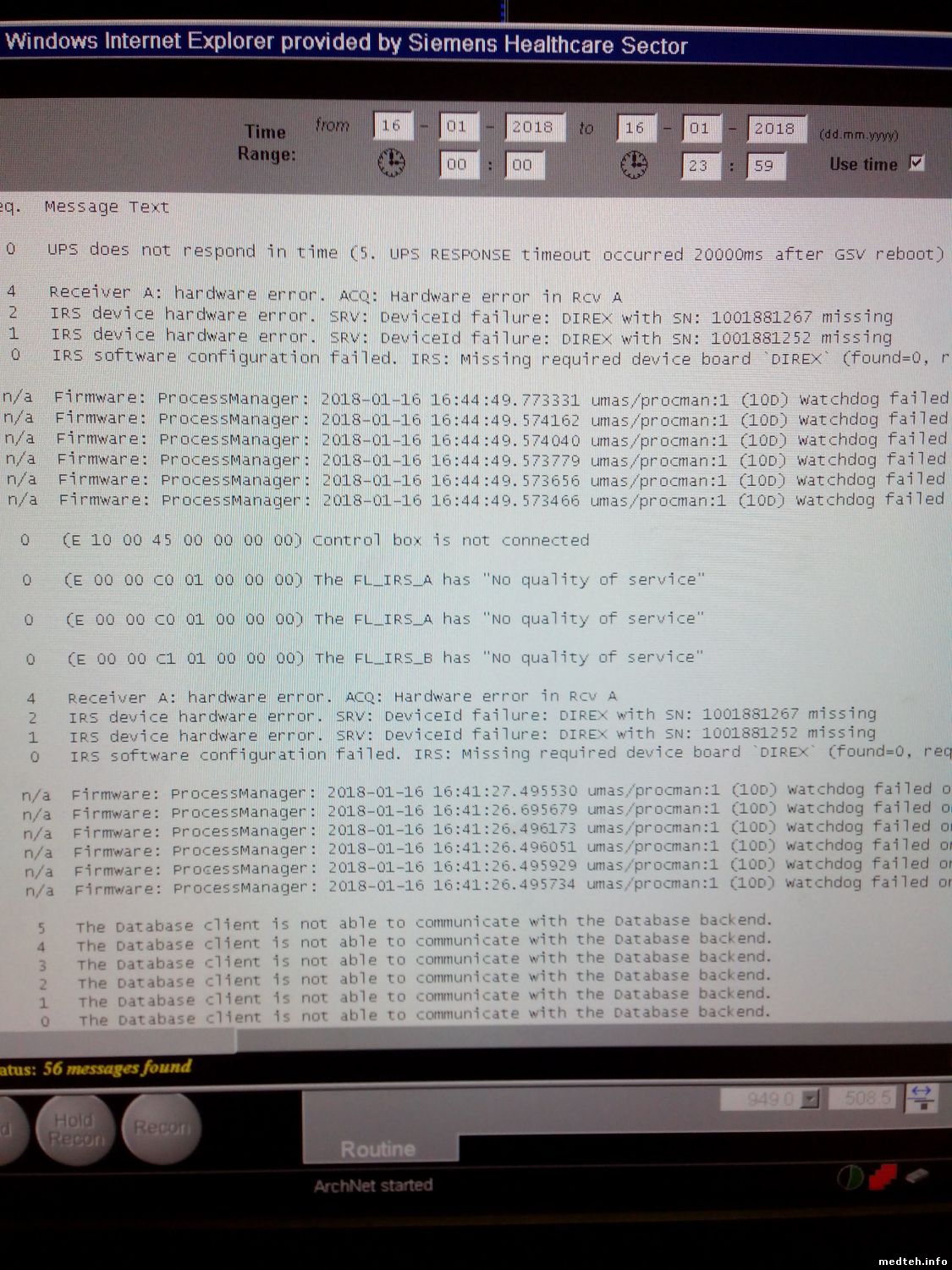 Пациенты в базе есть.Подключил монитор к IRS,сделал тесты.Не работает одна из двух интернет плат.Пишет в свойствах,что Not connected и поле адреса пусто.Прописал бы, но не нашел в описании ,какой адрес её должен быть .Возможно неисправен сам адаптер.Также в тесте пишется про потерю плат DIREX. Это приемники,к которым идёт оптика от гентри. IP adress 192.168.184.2 to ICS-IRS работает,какой второй адрес к генератору?