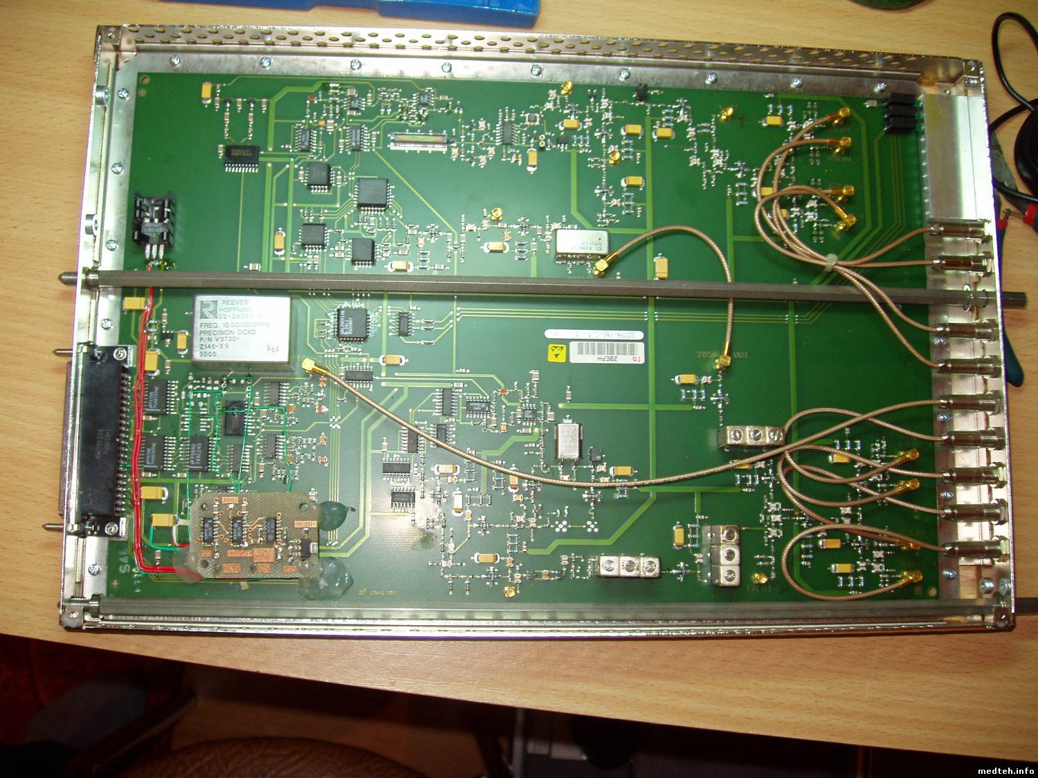 На Д1-1 загораются светодиоды при каждой загрузке по разному. На синтезаторе ничего,- проверил напряжения питания на синтезаторе всё в норме. Проанализировав структуру блока синтезатора частот и сделал вывод, что этот модуль не имеет никаких управляюших шин из внешних блоков, а потому частота 10MHZ должна присутствовать на контрольной точке всегда , тем более эта частота тактирует почти все цифровые и РЧ модули (вычитал в доках). Сегодня проверил на другом МРТ SIEMENS IPACT EXPERT (унас их несколько) конструкция другая, но принцып тот же.Частота 10 МГц есть всегда на контрольной точке. Смоделировав неисправность синтезатора, и при этом градиент выдал ошибку модулятора.