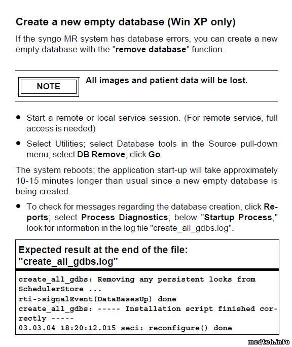 Спасибо за помощь,базу данных восстановил,только просто утилиты не сработали.Диск Е был пустой,папки в нем не восстанавливались.Пришлось переписать 3 папки с диска Med_Pixel на рабочей станции на новый пустой Е Med Pixel на основной консоли,потом удалять все базы данных утилитами и после перезагрузки все восстановилось.Правда после всей возни с компом стала теряться периодически связь с реконстуктором ,что-то с кабелями. Если долго мучаться,что-нибудь получится.Не люблю Сименс.