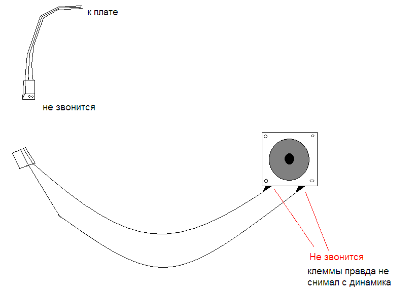 Ningen64, Если динамик не звонится мультиметром, то похоже на то, что динамик сдох (бывает в динамике отваливается одна из нитей ведущие от клемм динамика к диффузору). Тут важно прозвонить как динамик, так и саму трассу к нему.