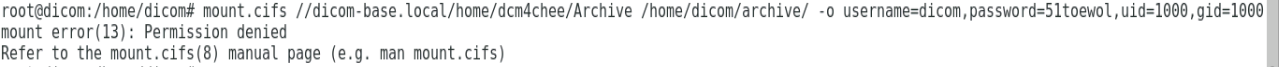 Всем доброго времени суток! Прошу помощи! Виртуалка с dcm4chee/debian9 установлена в гипервизоре виндового сервера. К нему же подключено сетевое хранилище (как я понимаю отдельный девайс - сеть от меня удалена :) :) ). Снимки нужно сбрасывать туда по пути: smb://dicom-base.local/home/dcm4chee/Archive В jmx-консоли прописываю этот путь в в org.dcm4chex.archive.ejb.interfaces.FileSystemDTO addRWFileSystem Ничего не меняется. Снимки по прежнему сохраняются по старым путям. Что я делаю не так?