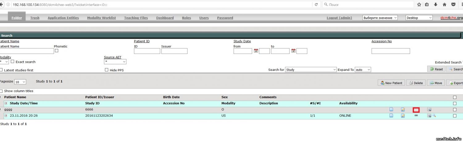 Добрый день, Подскажите, может кто сталкивался, пытаюсь сортировать пациентов в веб интерфейсе, выставляю Study date, нажимаю Search, после этого дата From меняется на один день назад и так каждый раз при нажатии на Search (то есть, я ставлю с 8 по 10 число, нажал на search, он меняет дату на с 7 по 10 и отображает с 7 по 10, при следующем нажатии с 6 по 10), или изменение количества пациентов на странице. Плюс не работает кнопка Latest studies first.
