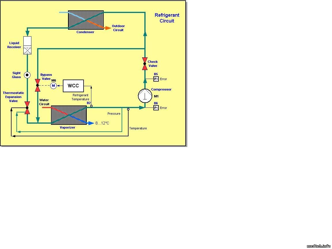Меня смутило следующее: если я руками поворачиваю трехходовой кран (верхний) на пол оборота против часовой стрелки, то температура начинает падать, но он возвращается в прежнее положение. Думал копать в этом направлении, но пока остановлюсь на проверке утечек фреона. Но на будущее спрошу: где задается температура охлаждения? Перекопал весь мануал ничего не нашел.