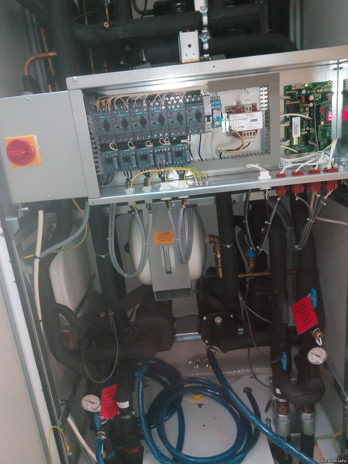 FedorM, спасибо за то, что откликнулись. Следуя Вашему совету проверил датчики температуры (опустил датчики в водную ванну с термометром, проверил значения по таблицам из даташитов, в конце поменял местами несколько датчиков). Заодно проверил достоверность контроллера - подключал по очереди вместо датчиков магазин сопротивлений и выставлял значения по даташитам на датчики. Заменил термопасту на водных датчиках. Похоже с датчиками все в порядке. Аппарату 2 года, в контуры охлаждения никто не лез (со слов заведующего), прошлую зиму пережил нормально, предполагаю что в первичном контуре все-же гликоль. Я только дозаправил вторичный контур водой. Оба контура холодные (по тактильным ощущениям). Обе помпы работают (давление во включенном состоянии 3,5 и 3,7 bar). Проверил визуально утечки, ничего не обнаружил. Только не могу быть уверенным в отсутствии утечек фреона, течеискателя не было с собой, надо было мне сразу с этого начинать. Когда температура поднимается до 14°C, запускается рефрижератор, т.е. он функционирует, но вот исправность его не ясна.