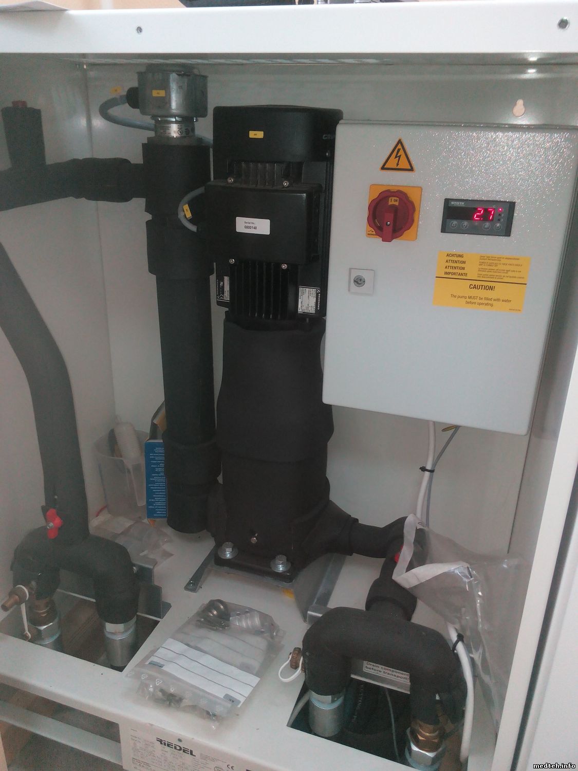 Аппарат такой же, модификацию не знаю. Кто располагает мануалом по охлаждению. Или хотя бы расскажет, как оно устроено. Зачем там маленький насос на гликоль и большой, тоже стоящий на этой линии? В шкафе также есть холодильный компрессор, но он не включается, это потому что зима или он заглушен навсегда? И самое главное, каков порядок замены гликоля, т.к. нужно заменить умирающий маленький насос и оттуда часть его выльется, создав пробку.