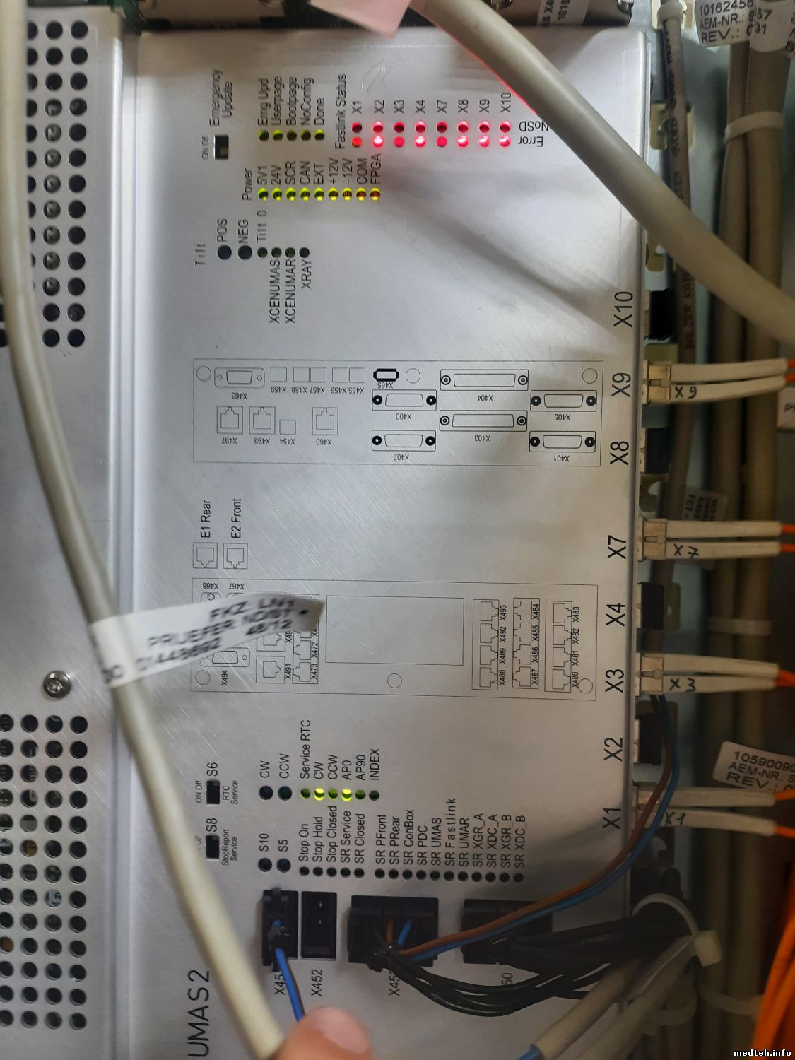 Здравствуйте! Такая ситуация: аппарат Siemens Somatom Definition AS не даёт готовность. При этом на UMAS2 не горят SRы. На LMAN не горит 24V и 3.3V. При этом на W305 и X302 все напряжения есть. Подскажите, пожалуйста, кто шарит в чём проблема.