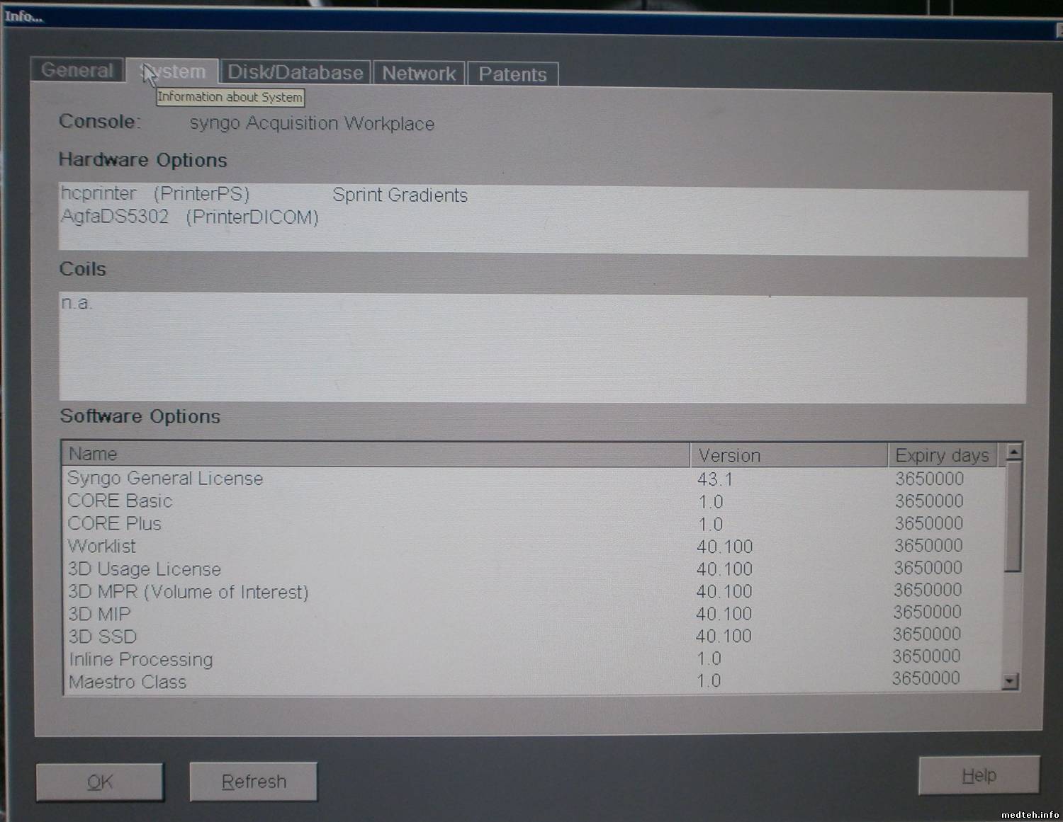 Yuri, Насчет пионеров, почти в точку, вроде взрослая компания - ЗМТ Воронеж поставлял восстановленный аппарат, из всей документации Инструкция оператора, причем syngo MR2002B (Print no. M1-015.621.18.01.02) и ВСЕ ни одного диска ни одного каталога. Здесь на файлообменике больше есть. А динамические данные и лицензии, бекап есть.