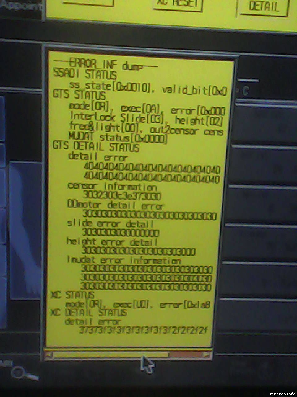 Добрый день! Может, кто сталкивался с подобной неисправностью... Предистория такая. Аппарат 2010 года выпуска. Работает без ИБП. Некоторое время назад в больнице два раза произошло кратковременное отключение сети, правда с процессом сканирования это не совпало. В этот день аппарат отработал нормально, а на утро при попытке прогрева стало выдаваться сообщение: