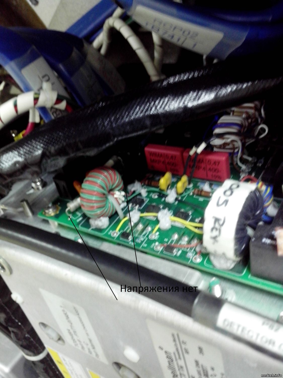 На HV Unit есть плата и отдельный импульсный источник питания. На плате 2 предохранителя. Оба целые. Написано под ними 250V. Замерили напряжения нет. На фотографии мобильным плоховато видно предохранители, но тем не менее. За этой платой импульсный источник электропитания. На всех аналогичных светится зеленый светодиод. На этом нет. Там просто крайне неудобно разбирать. НЕ хочется делать лишних движений, да и время терпит. Нет ли у кого фрагмента схемки как организовано питание в блоках AC, Inverter, HV Unit. Иначе придется наугад их разбирать, распускать шлейфы, а может и вынимать эти чушки из гентри.